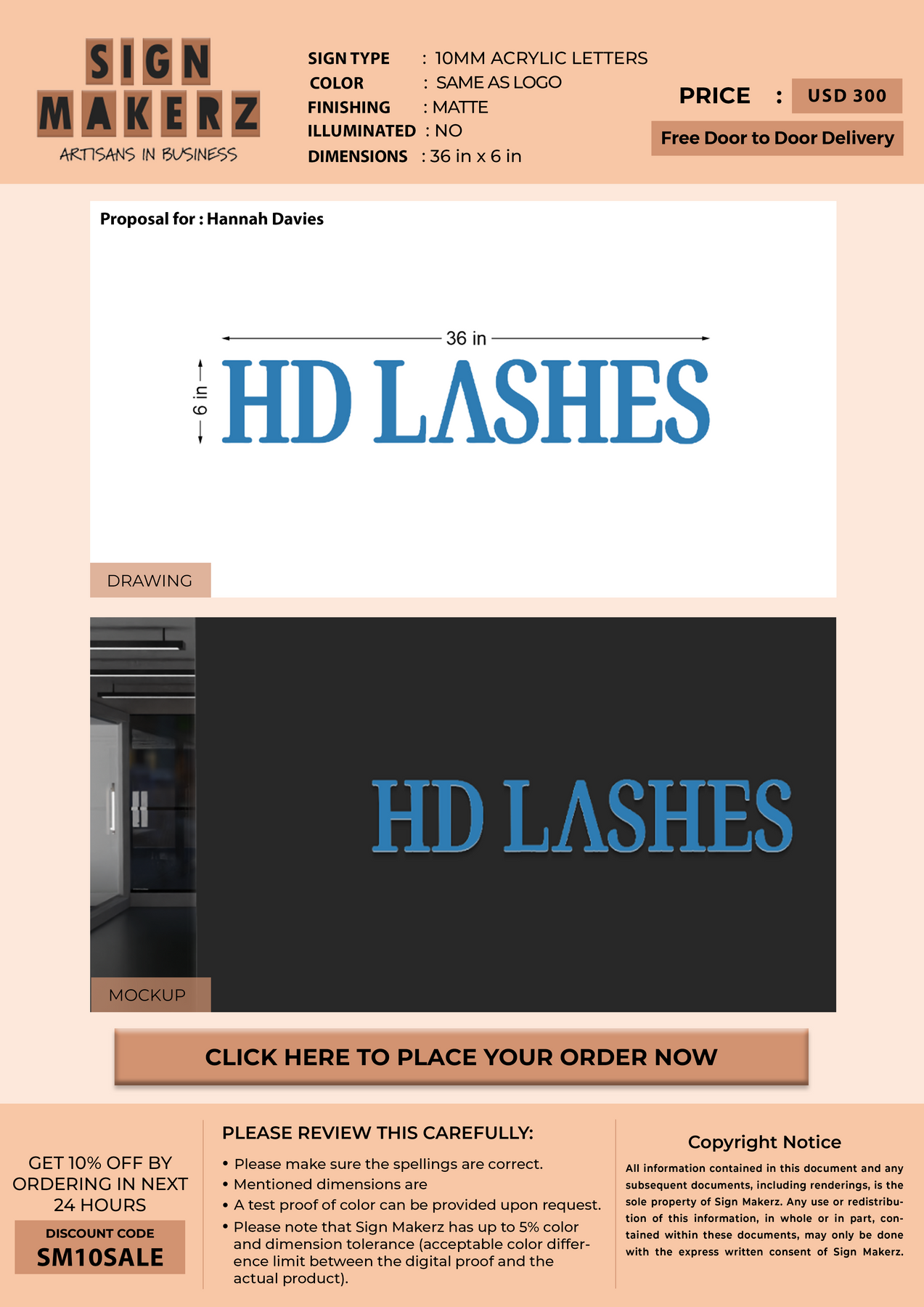 10mm acrylic letters for Hannah Davies