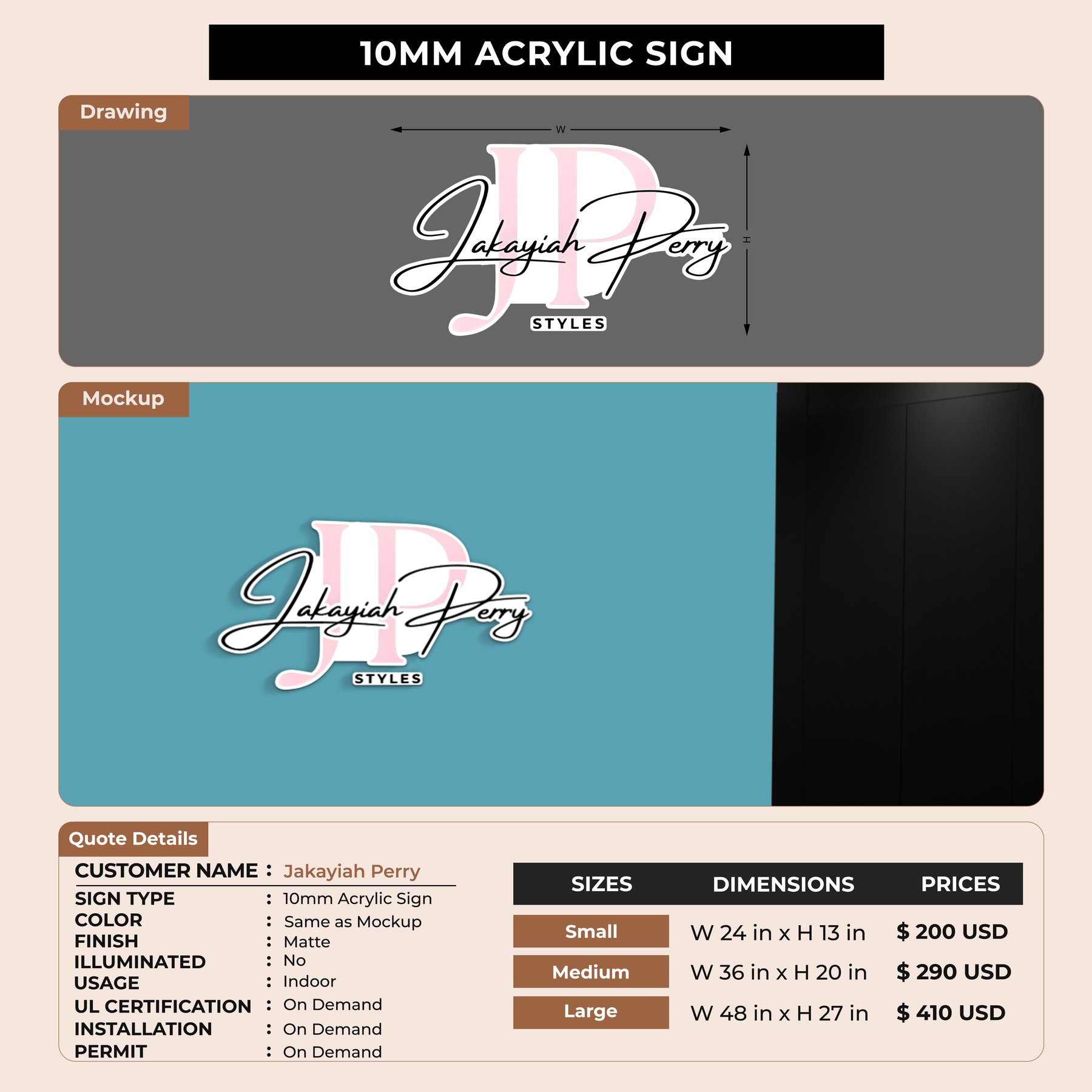 10MM Acrylic Sign For Jakayiah Perry