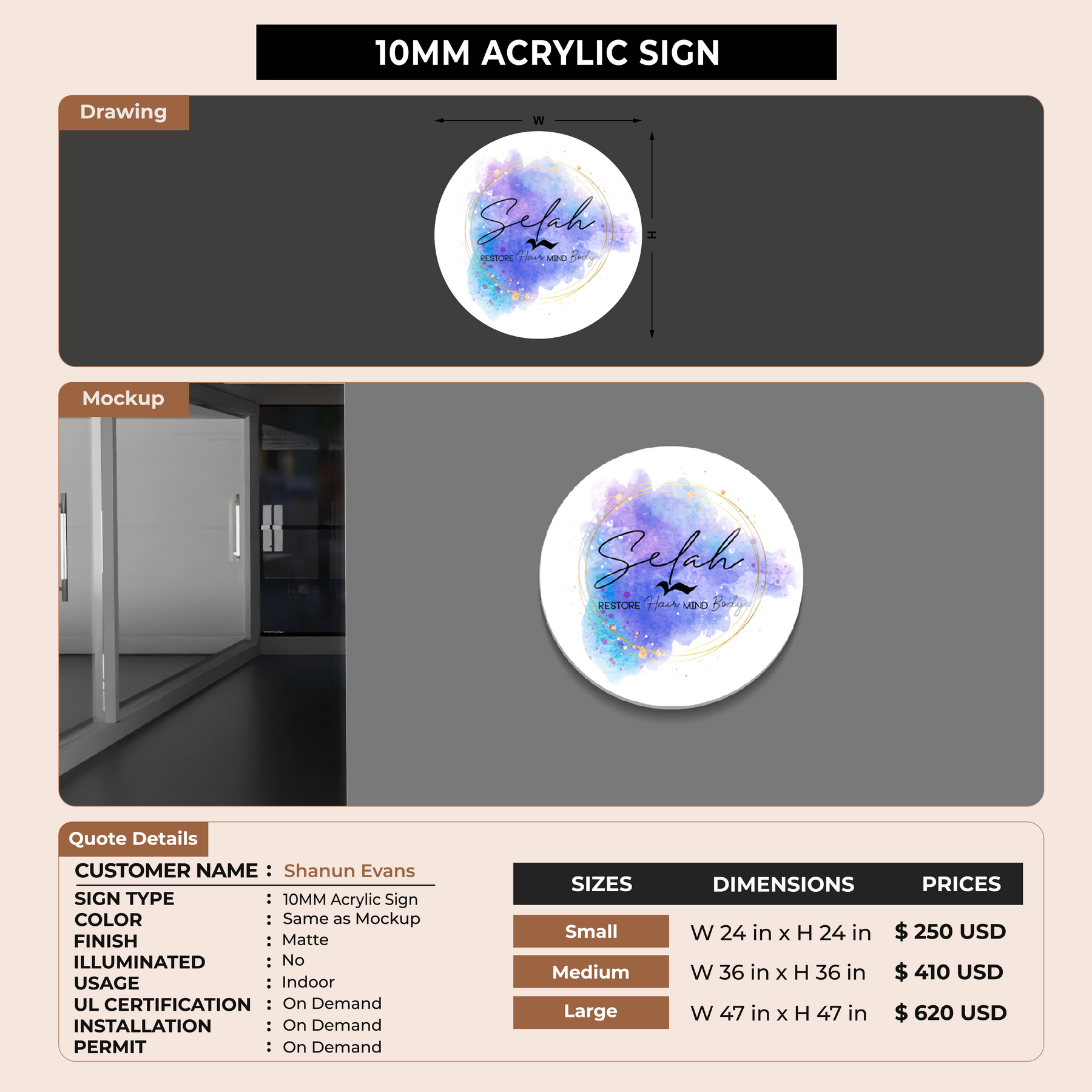 10MM Acrylic Sign For Shanun Evans