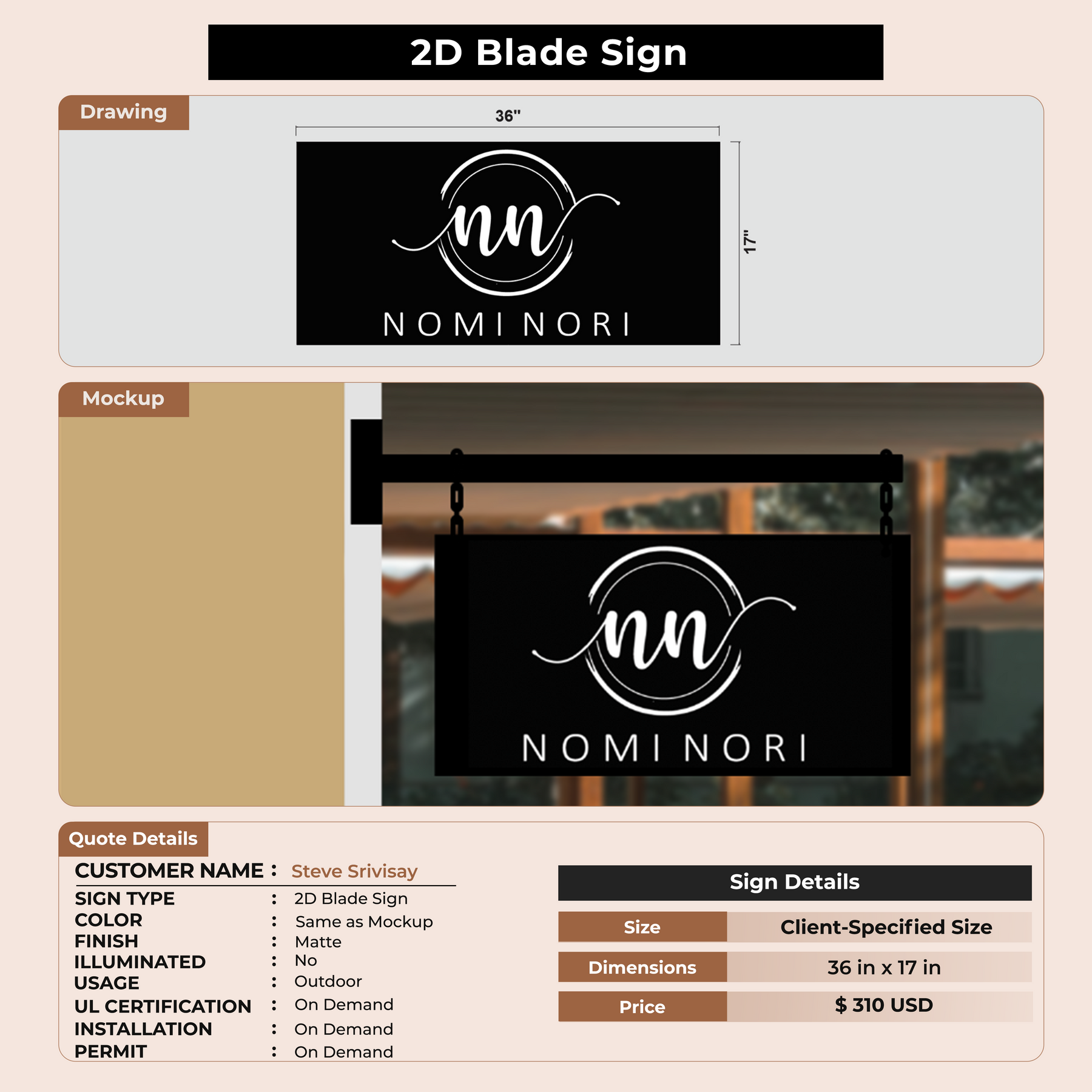 2D Blade sign for Steve Srivisay