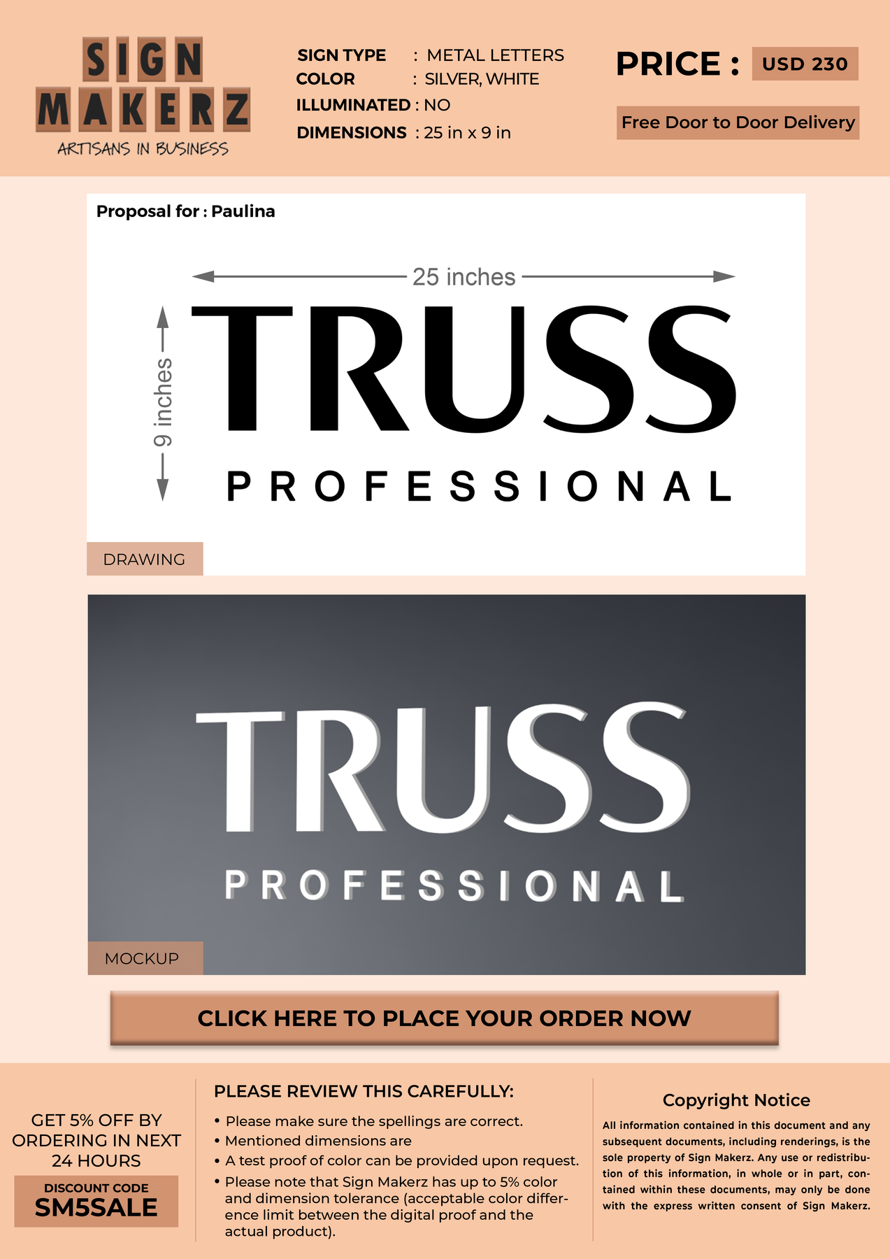 Crafted with premium material, this signage will elevate your business image, precisely mirroring your logo for a professional look.