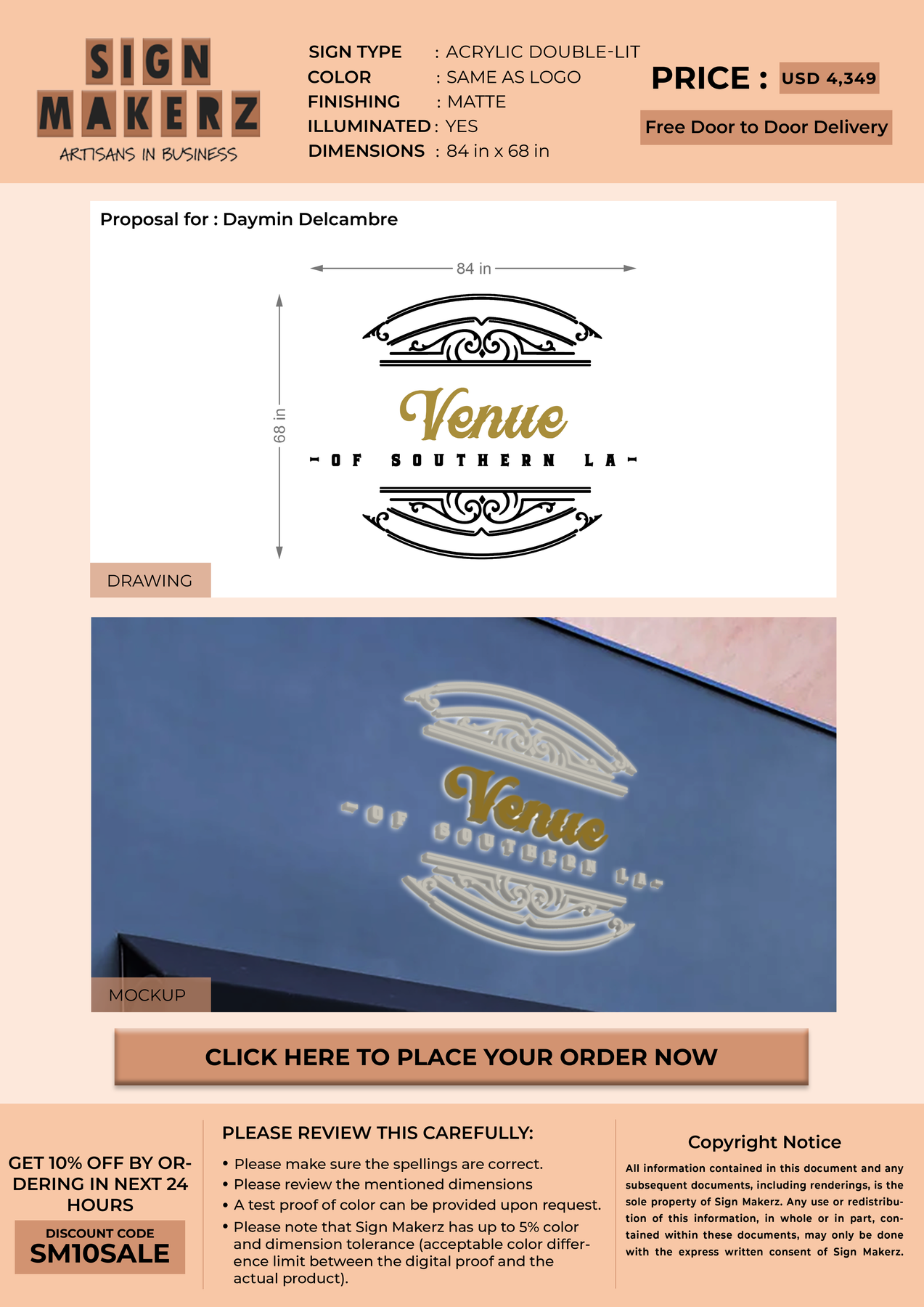 3D Acrylic Double-Lit Sign for Daymin Delcambre