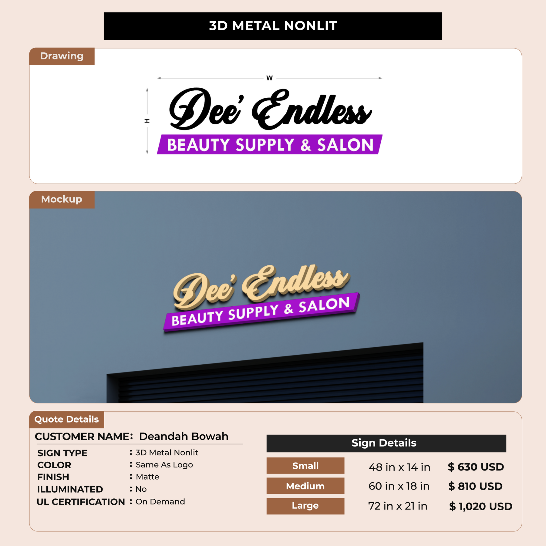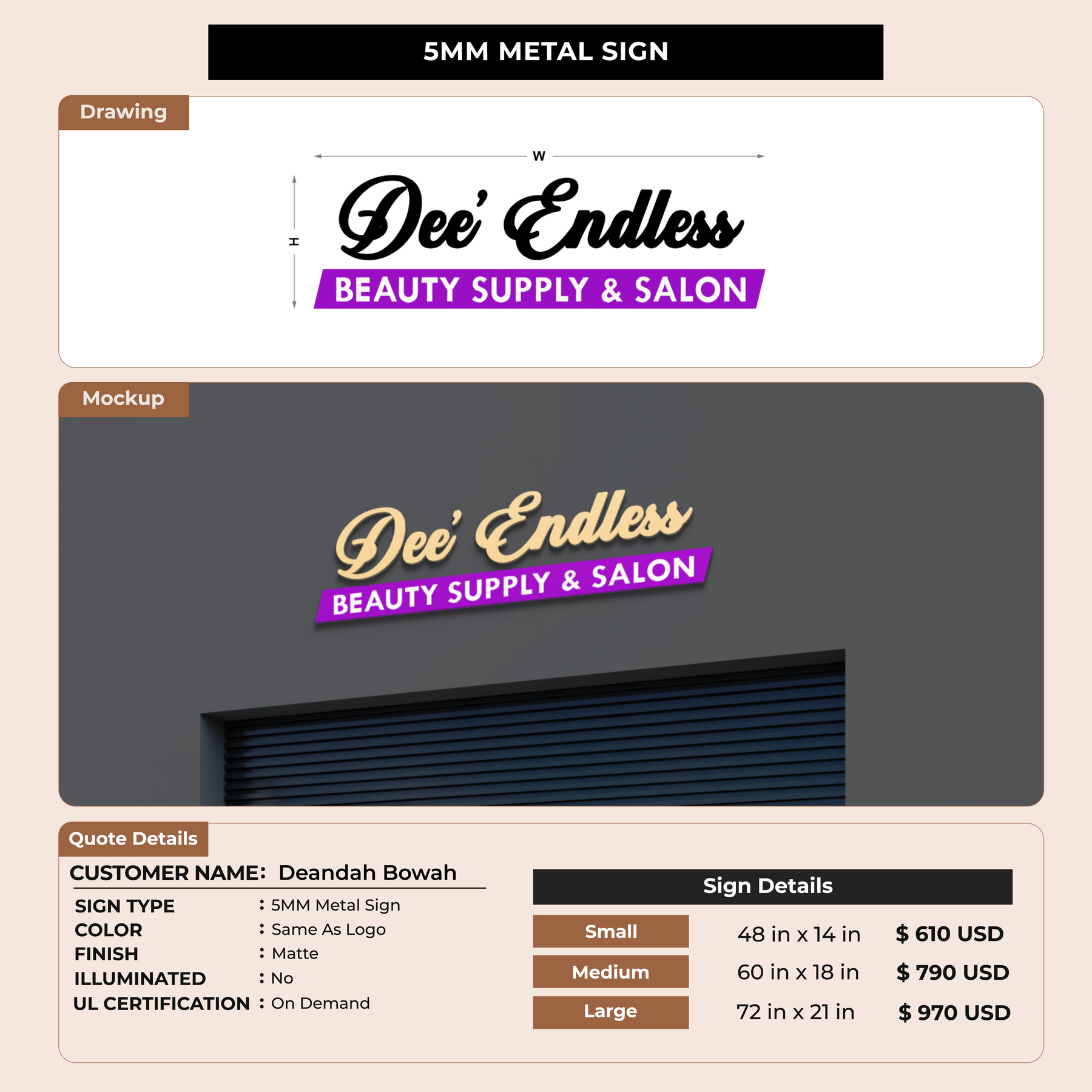 Enhance your business presence with our expertly crafted signage, made from top-quality material, to ensure longevity and durability. Fully customizable to reflect your unique brand identity, our signage offers a professional and polished appearance. Easy to install and low maintenance, it’s the perfect addition to any business setting. Trust us to deliver a product that not only meets but exceeds your expectations.