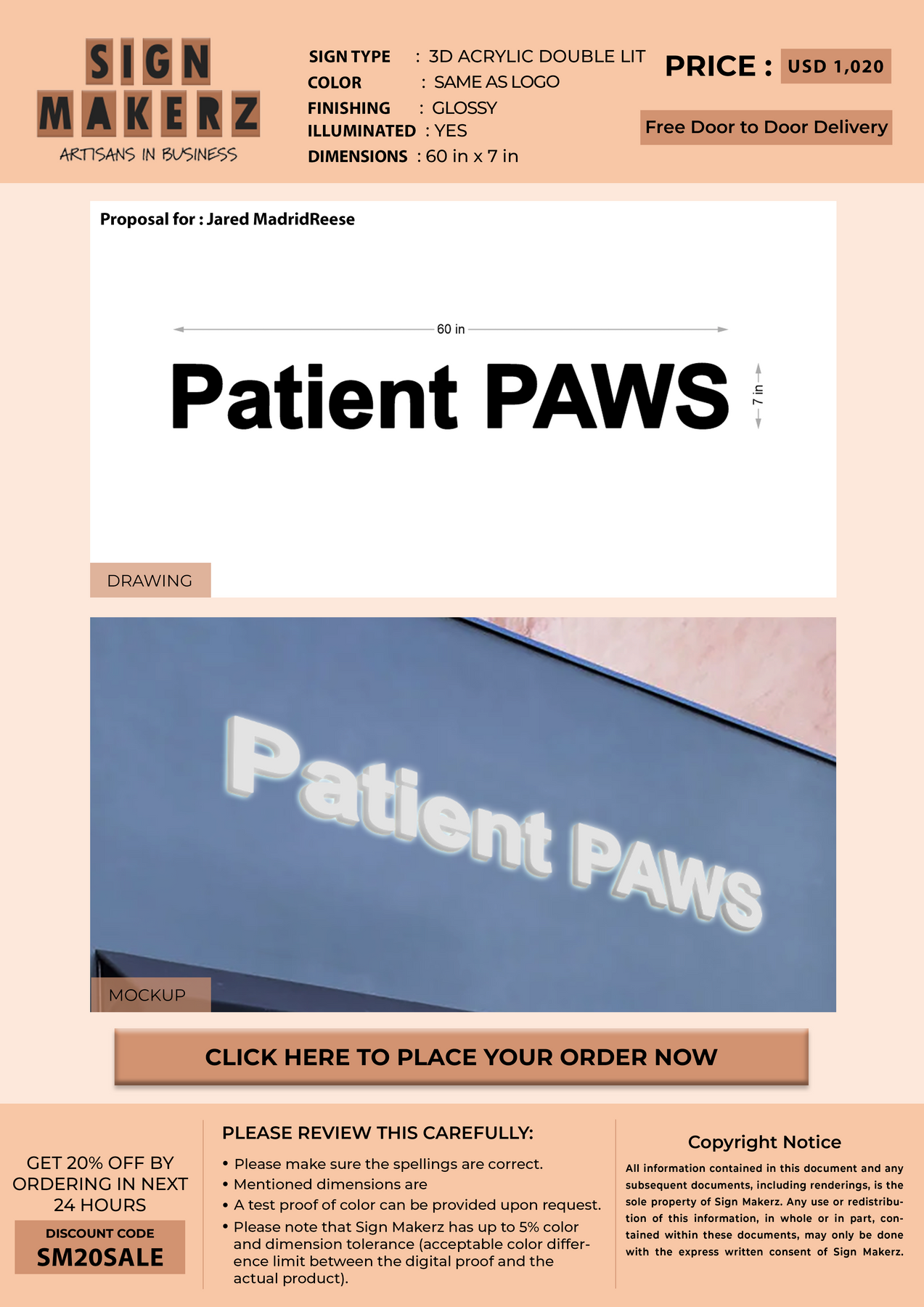 3D Acrylic Double-Lit Sign for Jared MadridReese