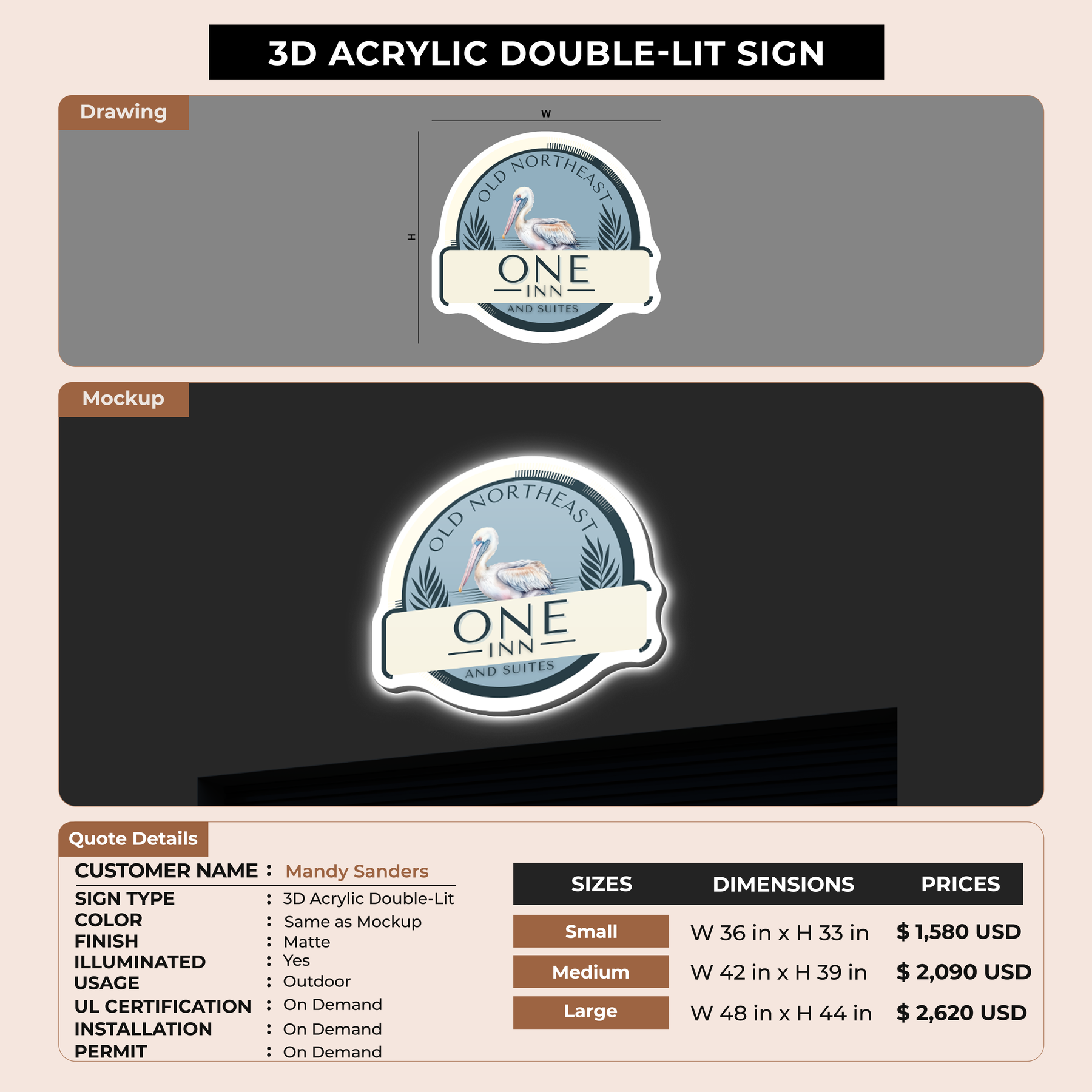 3D Acrylic Double-Lit Sign for Mandy Sanders