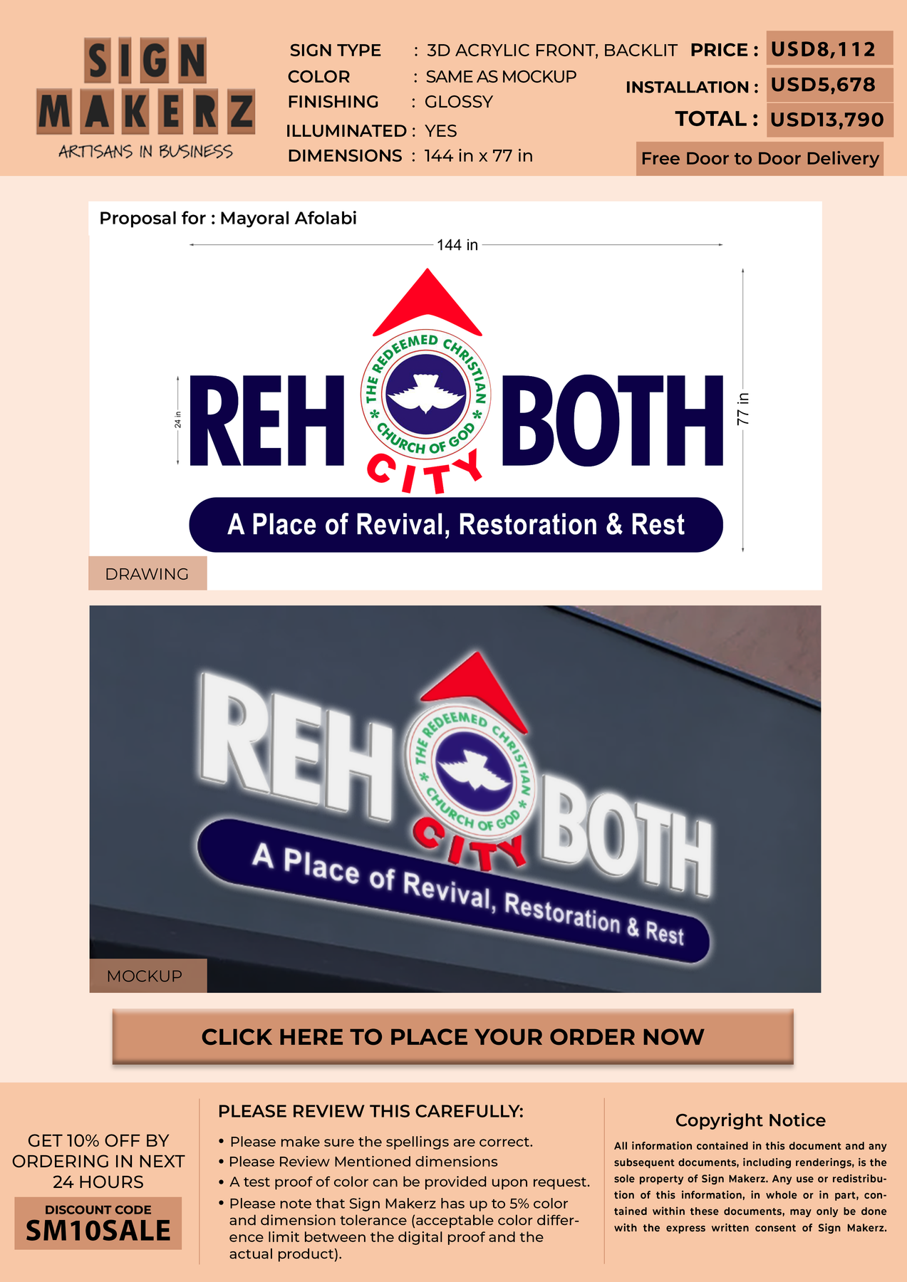 Installation services are available for an additional fee, depending on your location and the complexity of the signage.