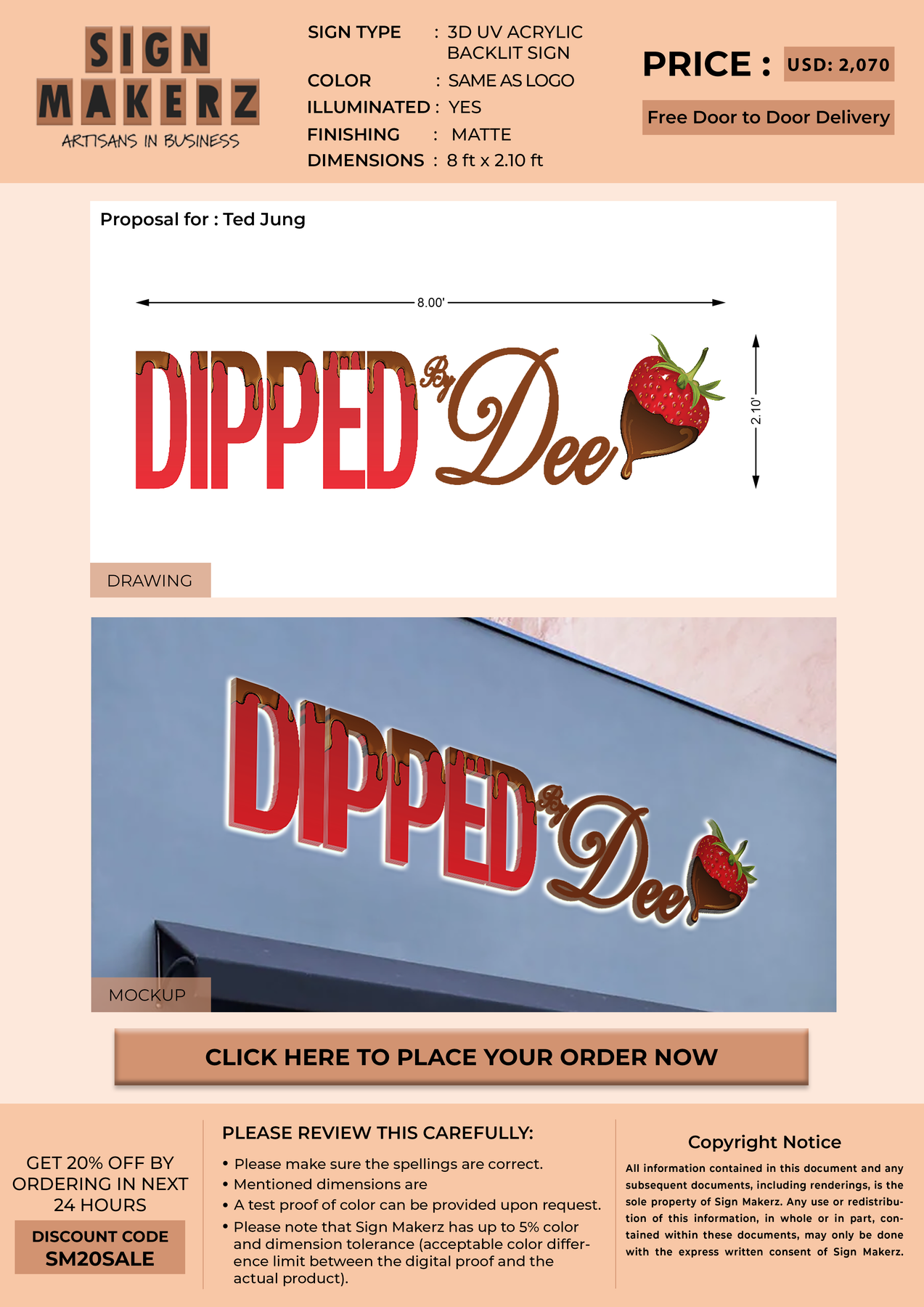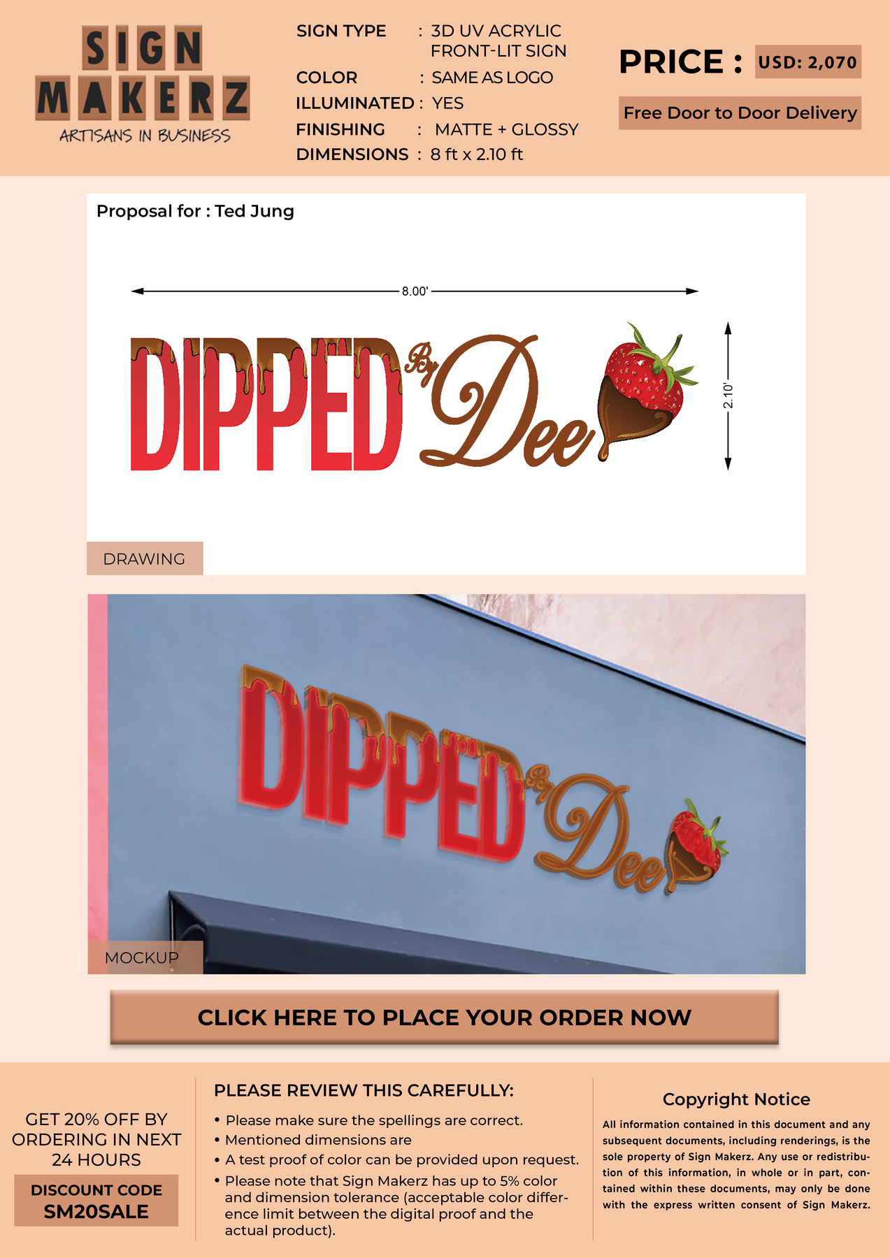 3D Acrylic Front-lit + Back-lit Sign For Ted Jung