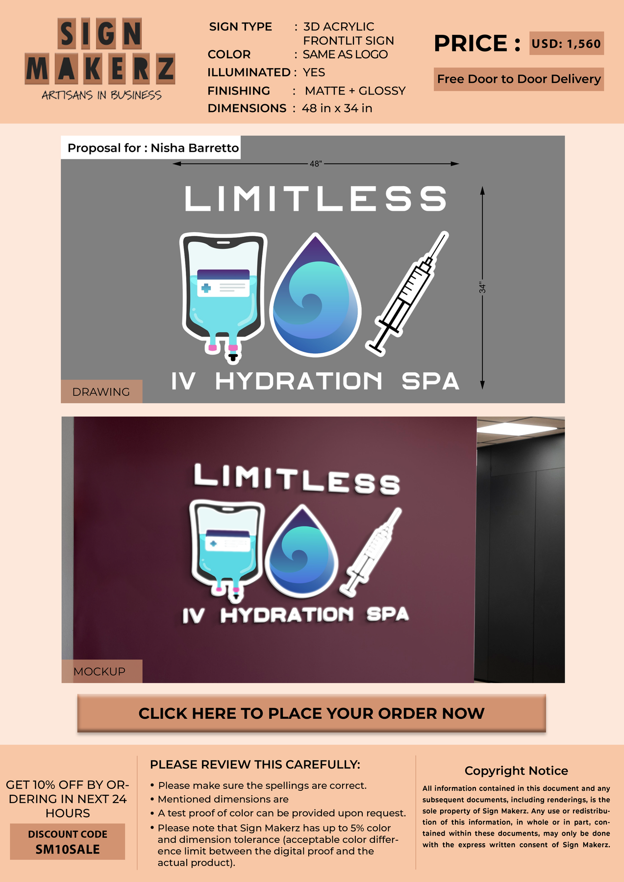 3D Acrylic Front-lit Sign For Nisha Barretto