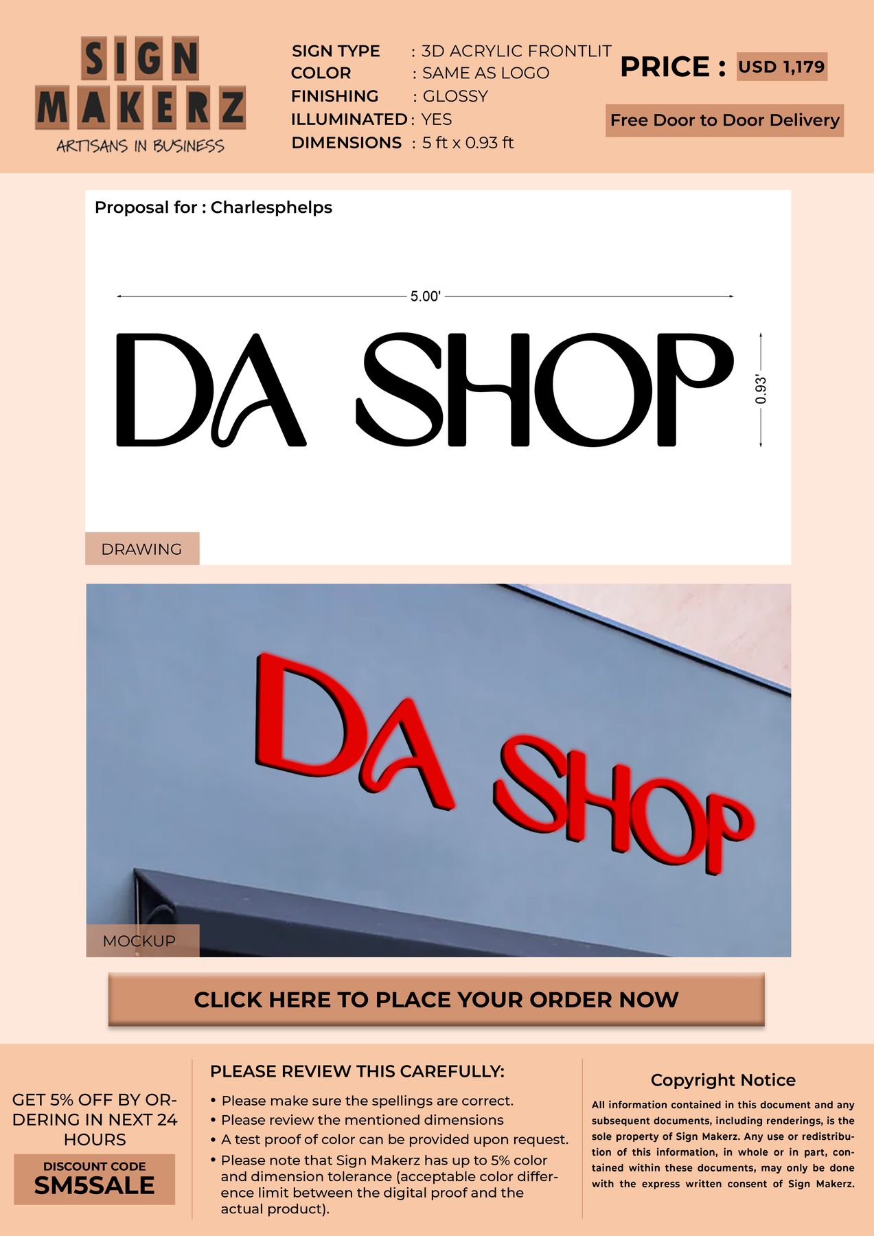 Crafted with premium material, this signage will elevate your business image, precisely mirroring your logo for a professional look.