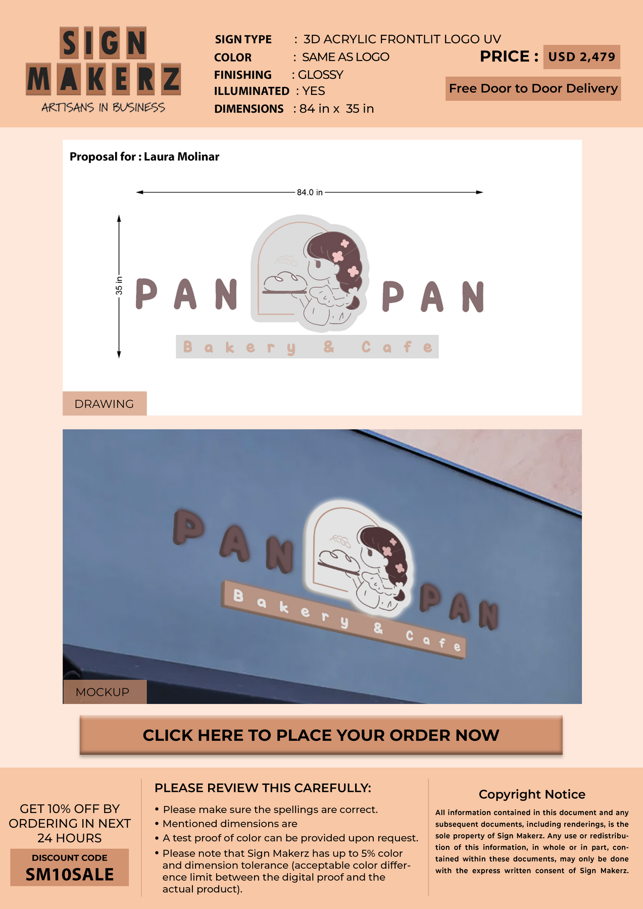 Crafted with premium material, this signage will elevate your business image, precisely mirroring your logo for a professional look.