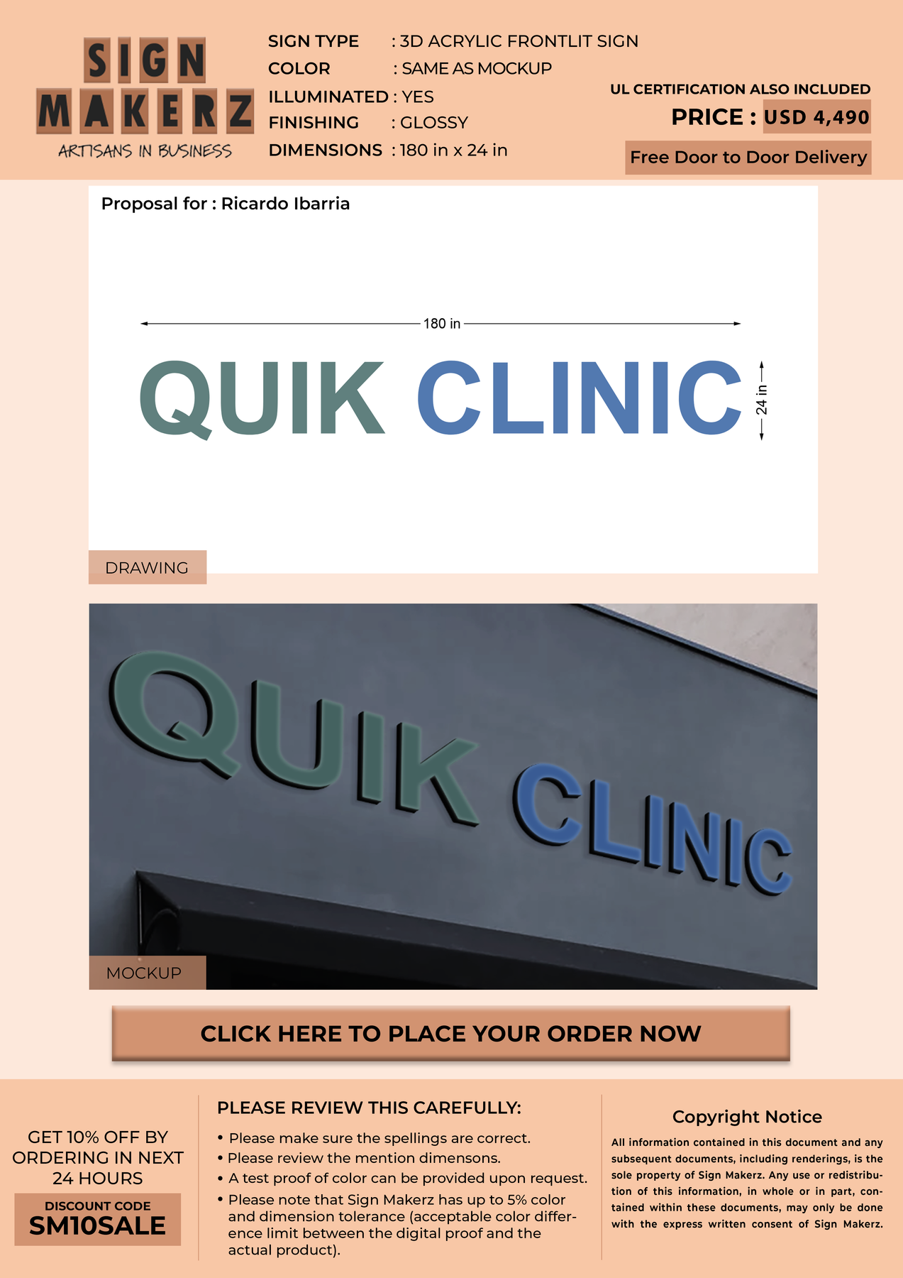 Crafted with premium material, this signage will elevate your business image, precisely mirroring your logo for a professional look.