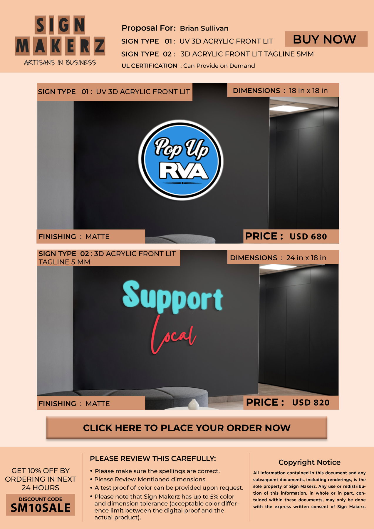 3D Acrylic Frontlit Sign For Brian Sullivan