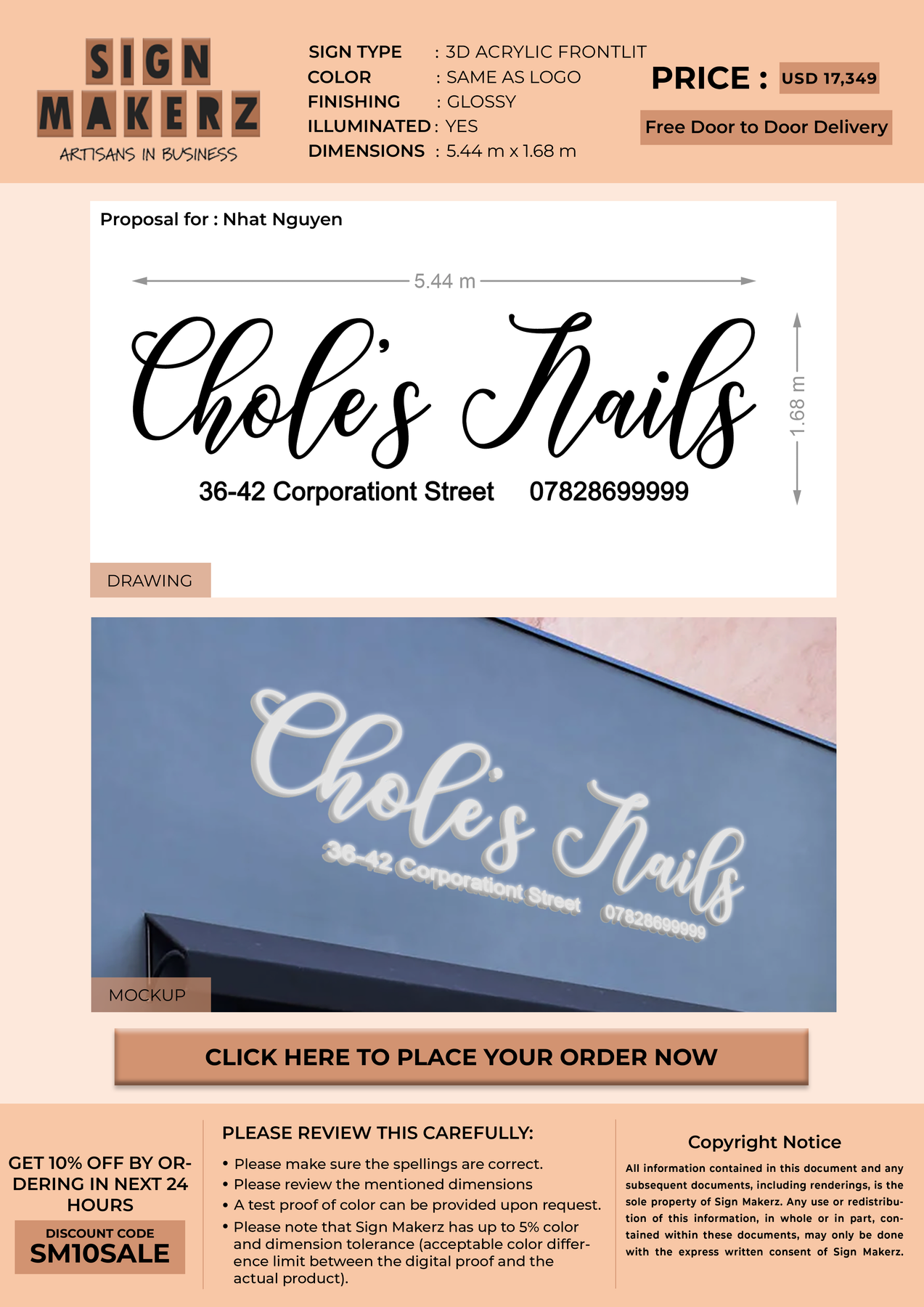 3D Acrylic Frontlit sign for Nhat Nguyen