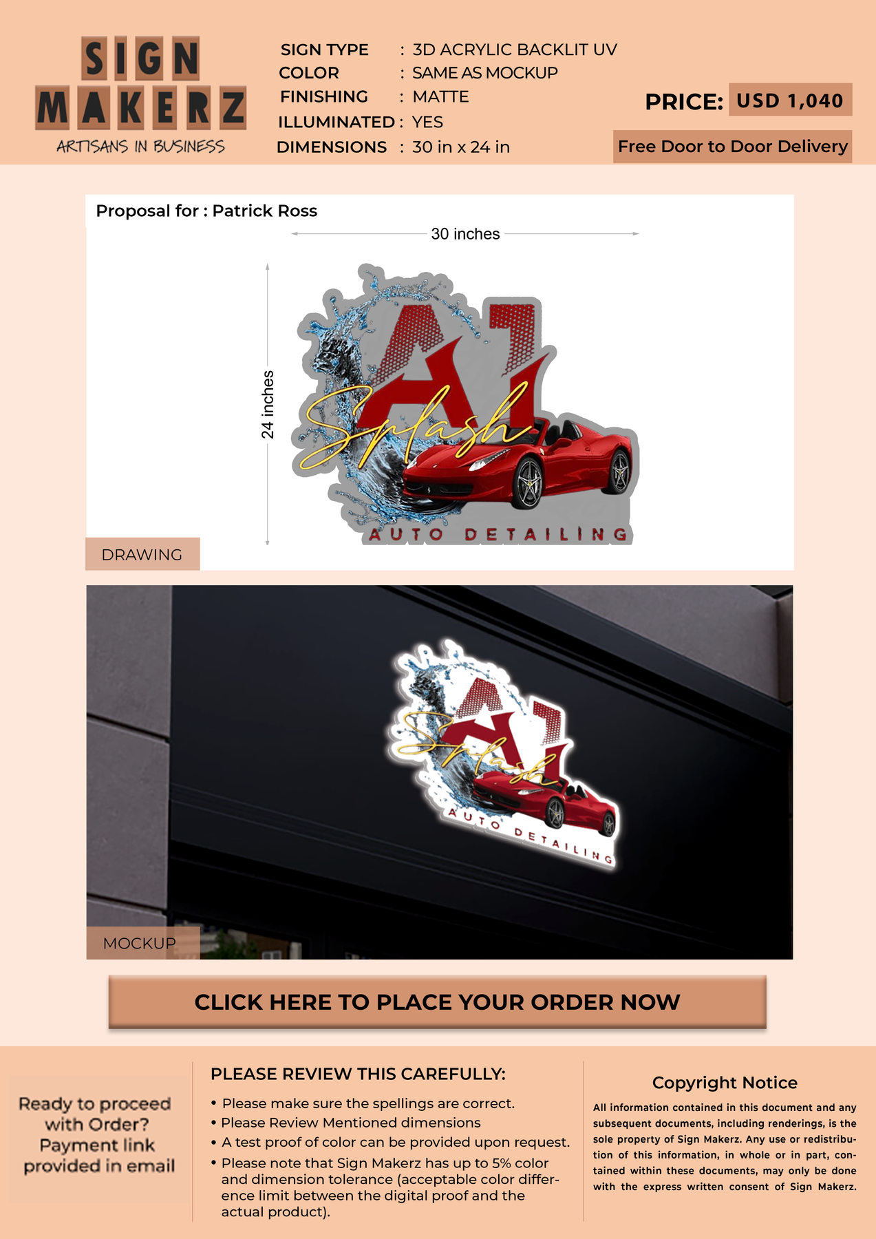 Crafted with premium material, this signage will elevate your business image, precisely mirroring your logo for a professional look.