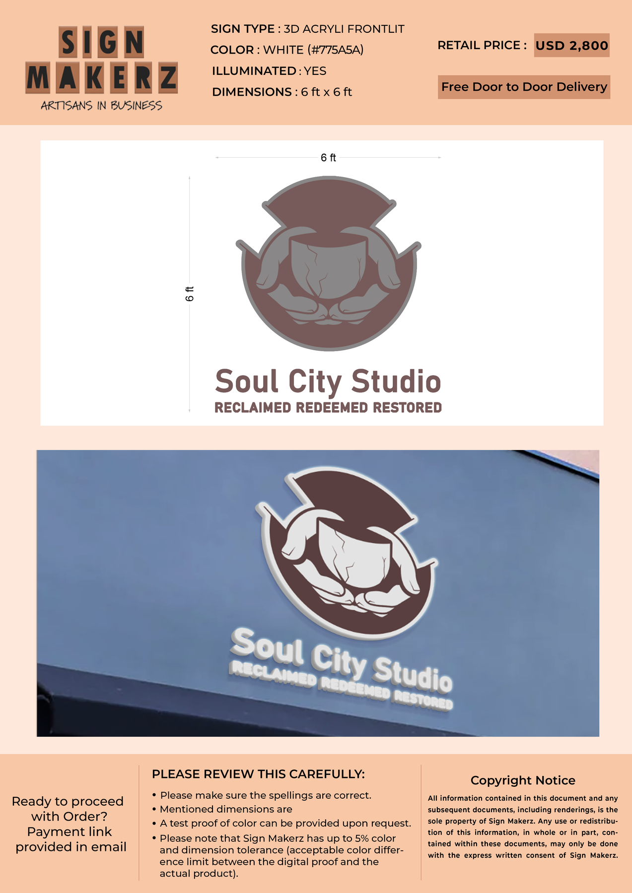 3D Acrylic Frontlit Sign for Soul City Studoi