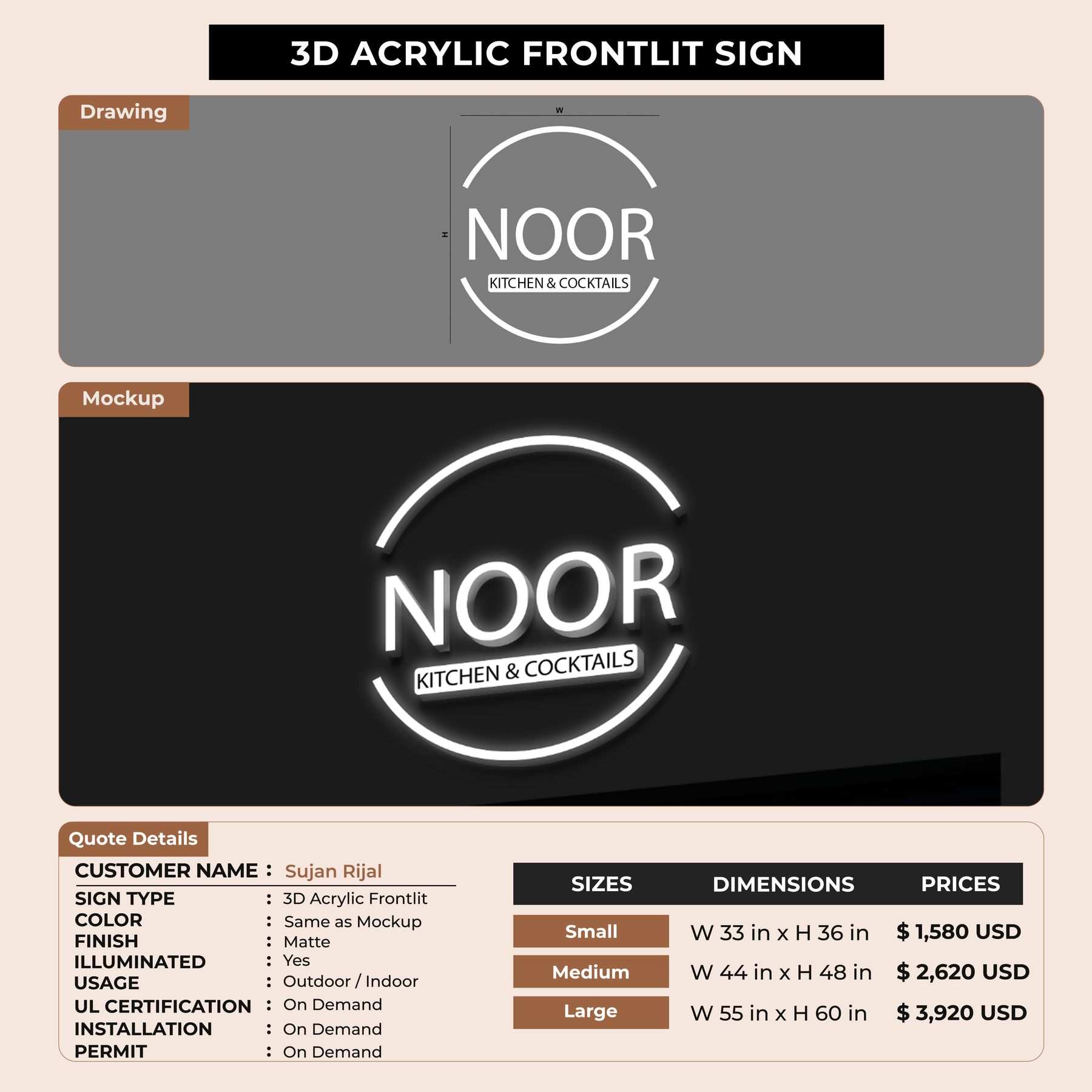 3D Acrylic Frontlit Signage for Sujan Rijal