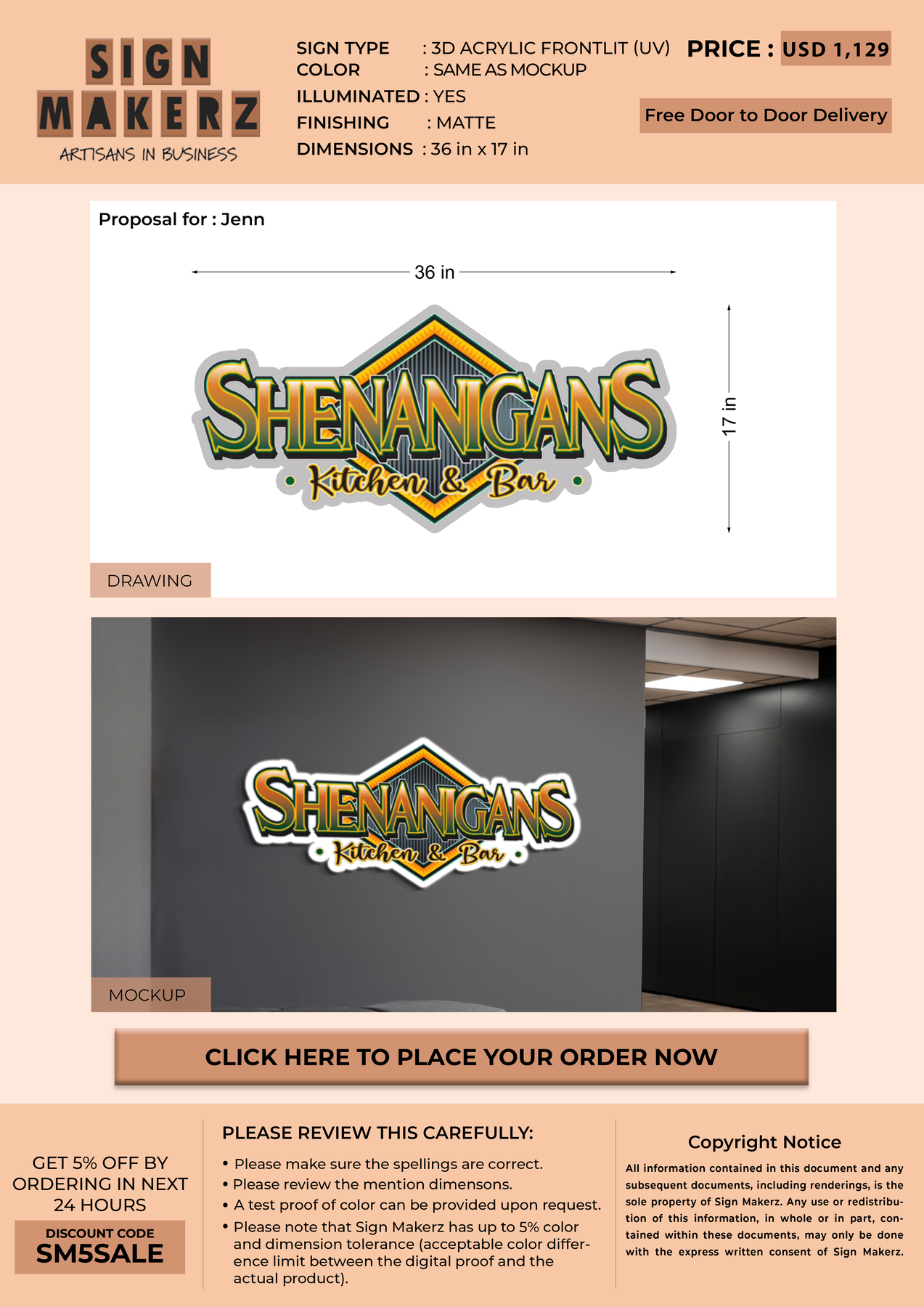 3D Acrylic Frontlit (UV) Sign For Jenn