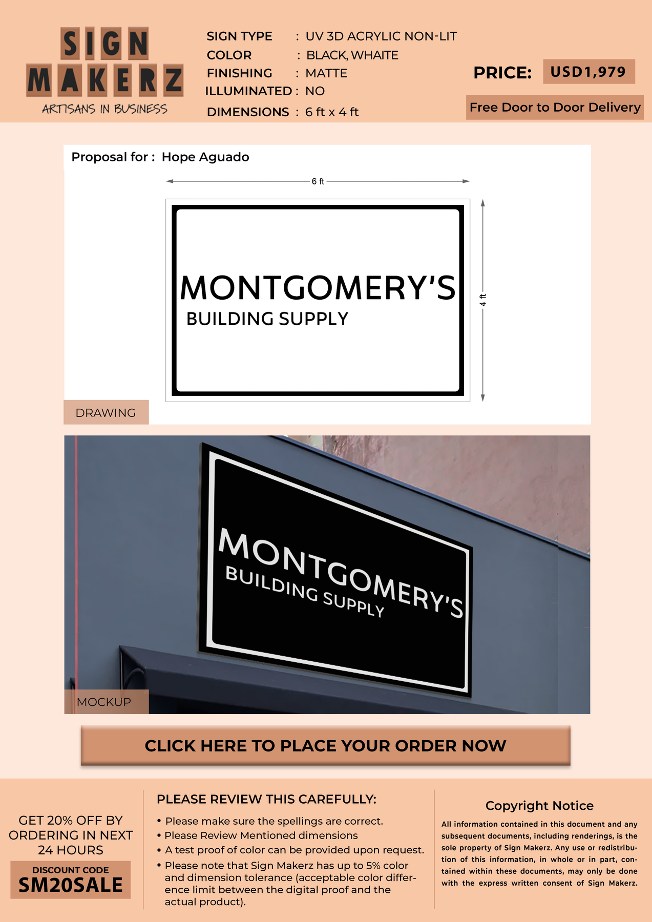Crafted with premium material, this signage will elevate your business image, precisely mirroring your logo for a professional look.