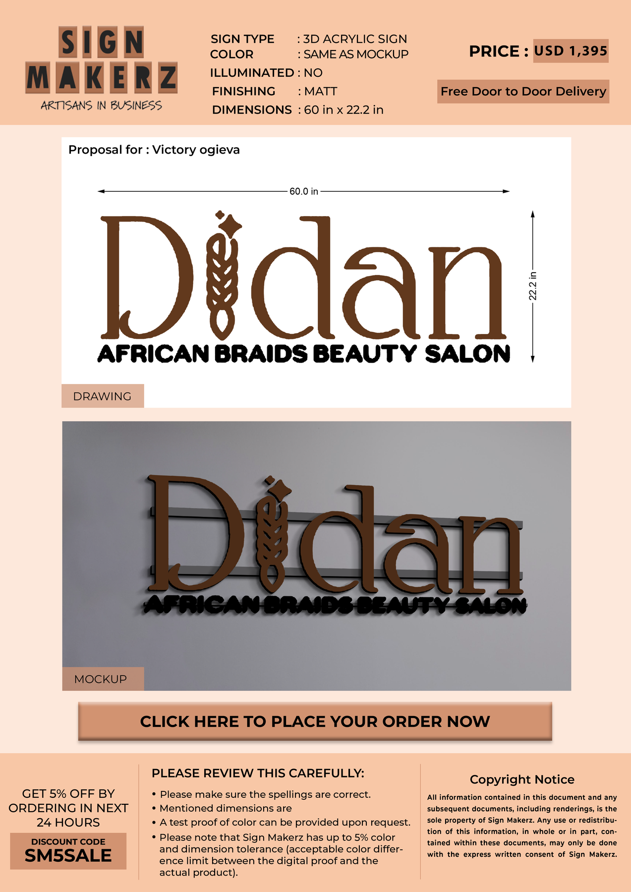 Crafted with premium material, this signage will elevate your business image, precisely mirroring your logo for a professional look.