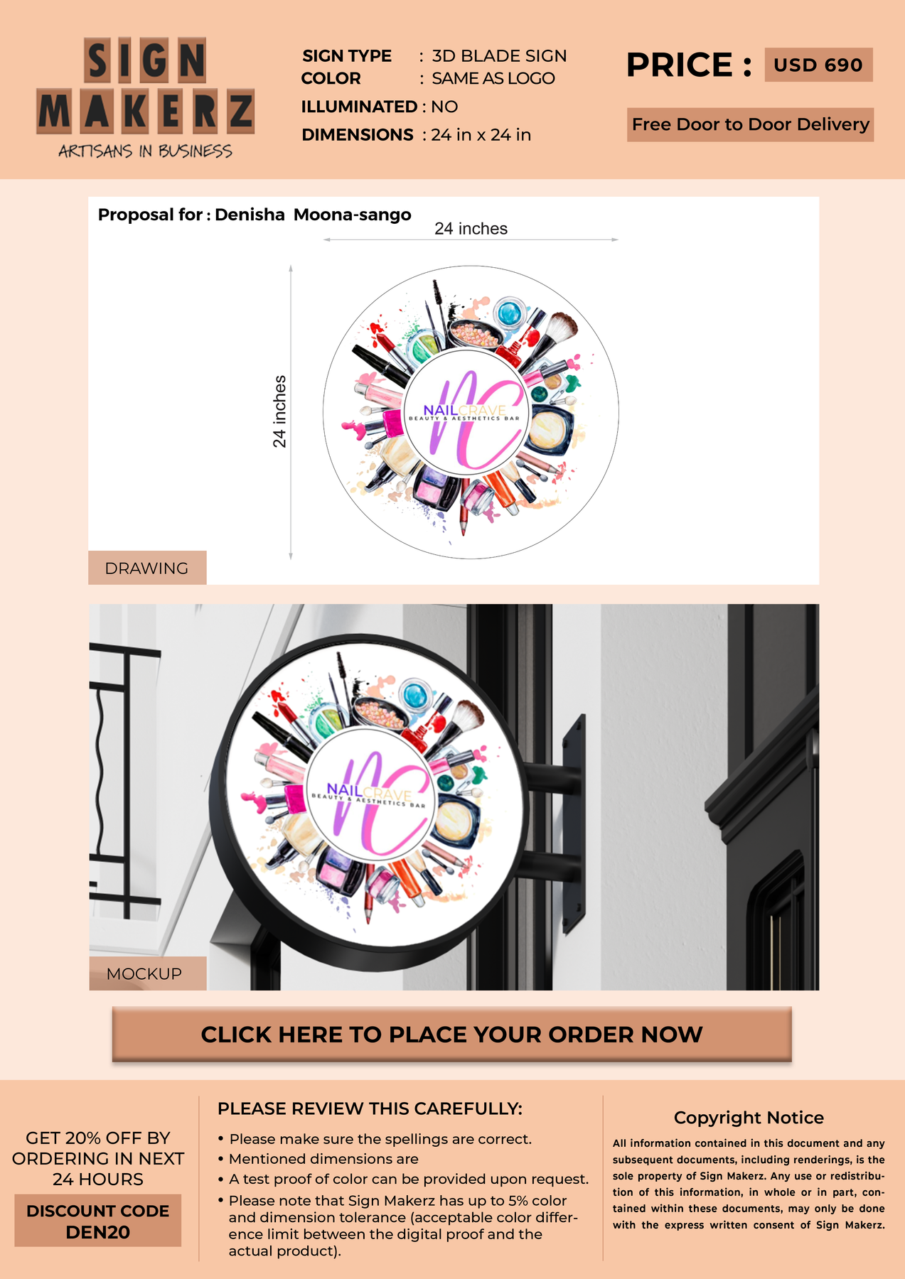 Crafted with premium material, this signage will elevate your business image, precisely mirroring your logo for a professional look.
