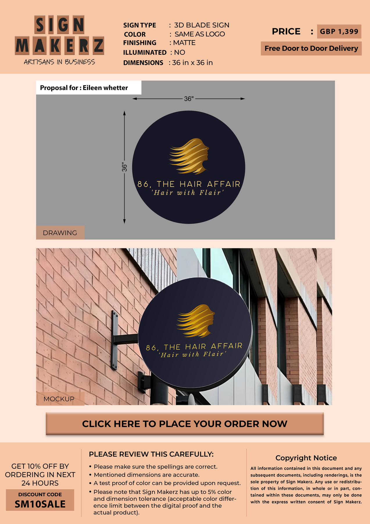 Crafted with premium material, this signage will elevate your business image, precisely mirroring your logo for a professional look.