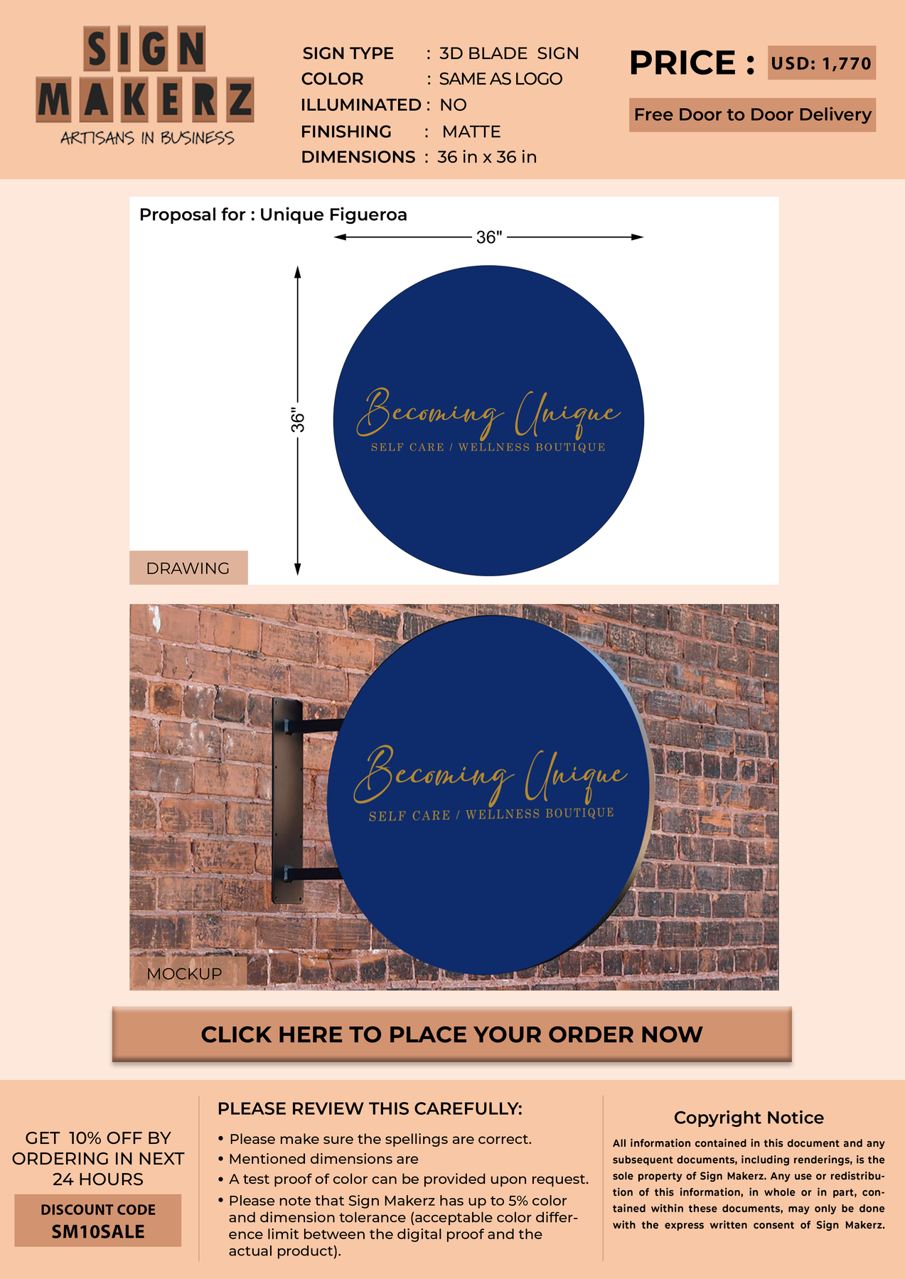 Crafted with premium material, this signage will elevate your business image, precisely mirroring your logo for a professional look.