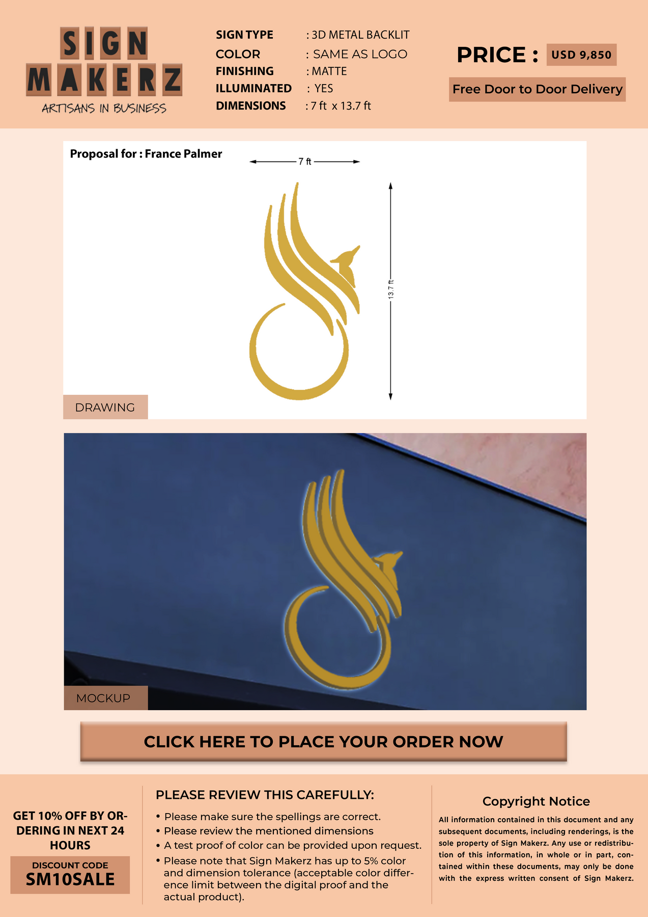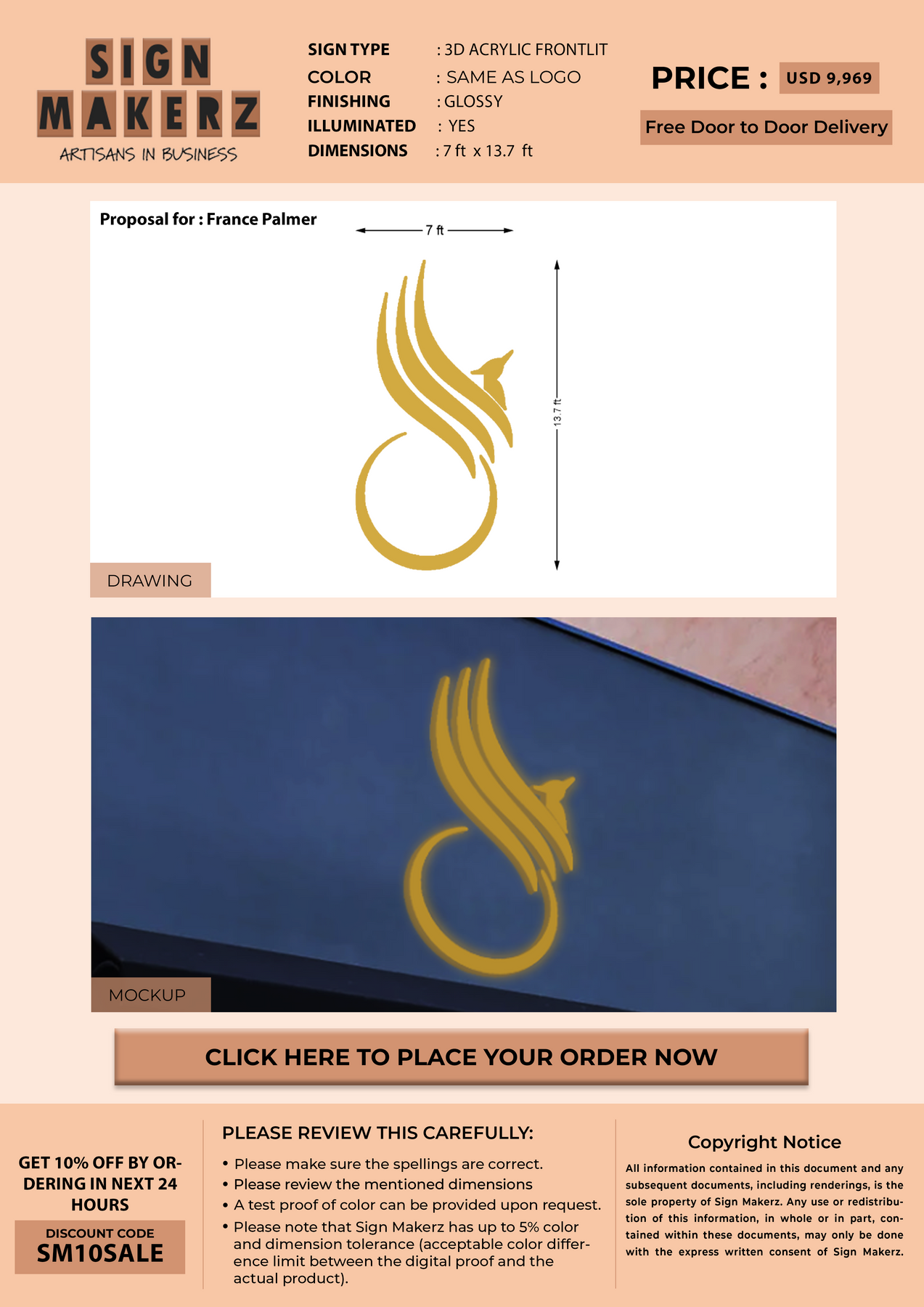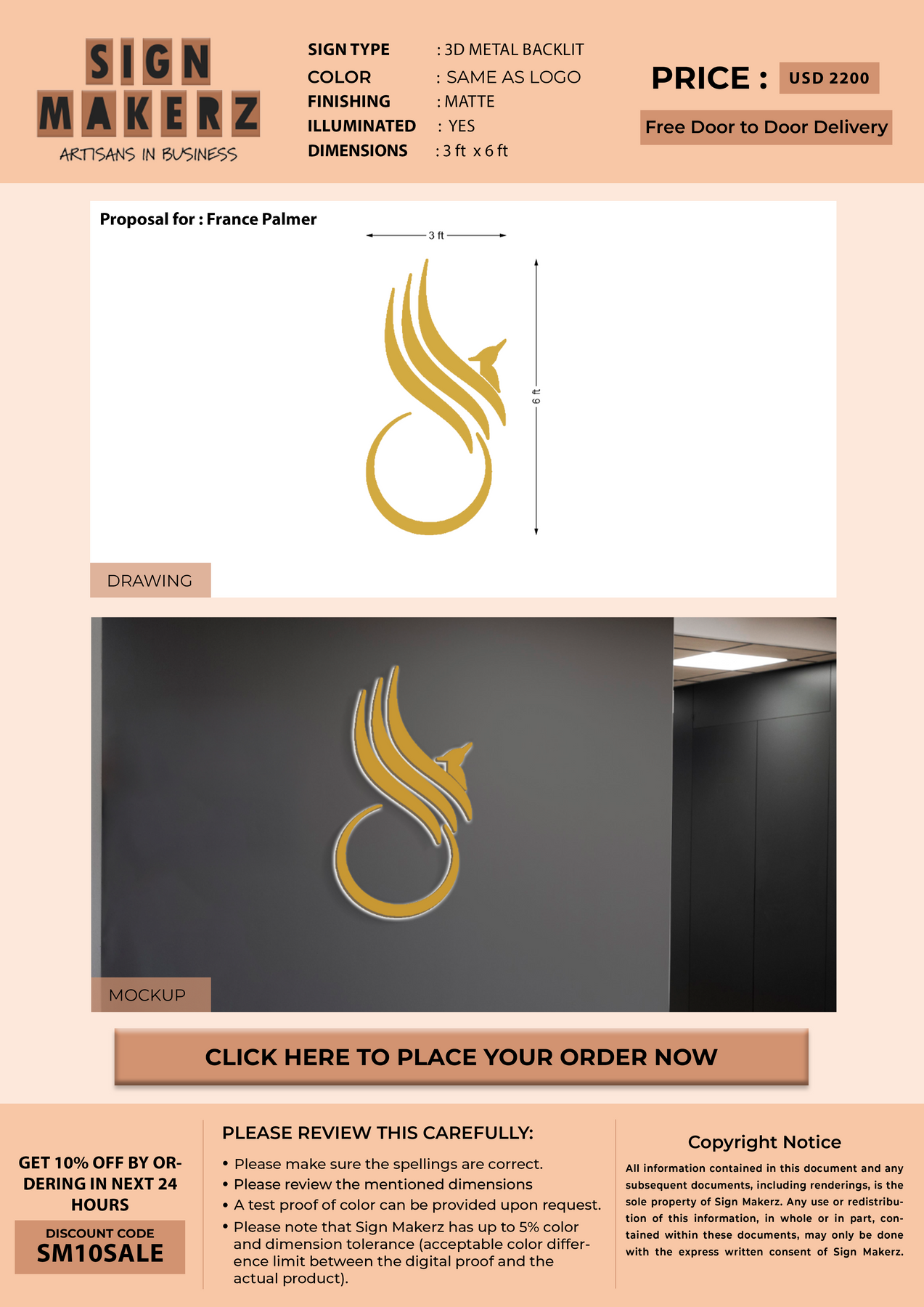 Crafted with premium material, this signage will elevate your business image, precisely mirroring your logo for a professional look.