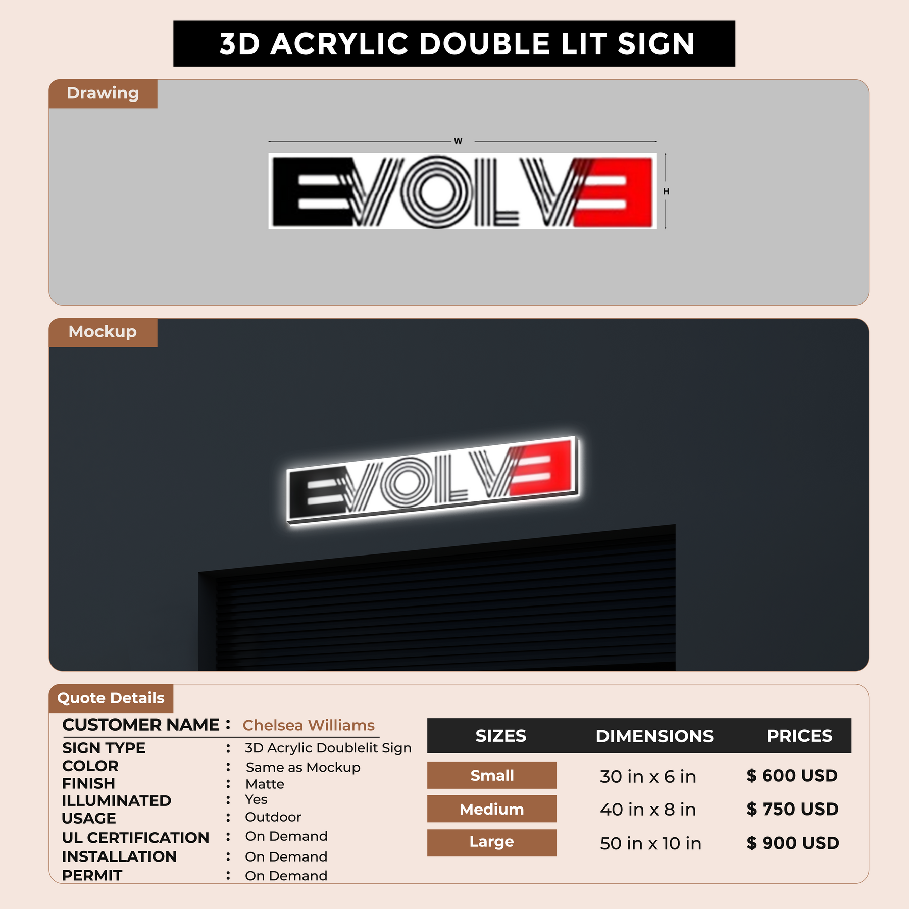 Crafted with premium material, this signage will elevate your business image, precisely mirroring your logo for a professional look.