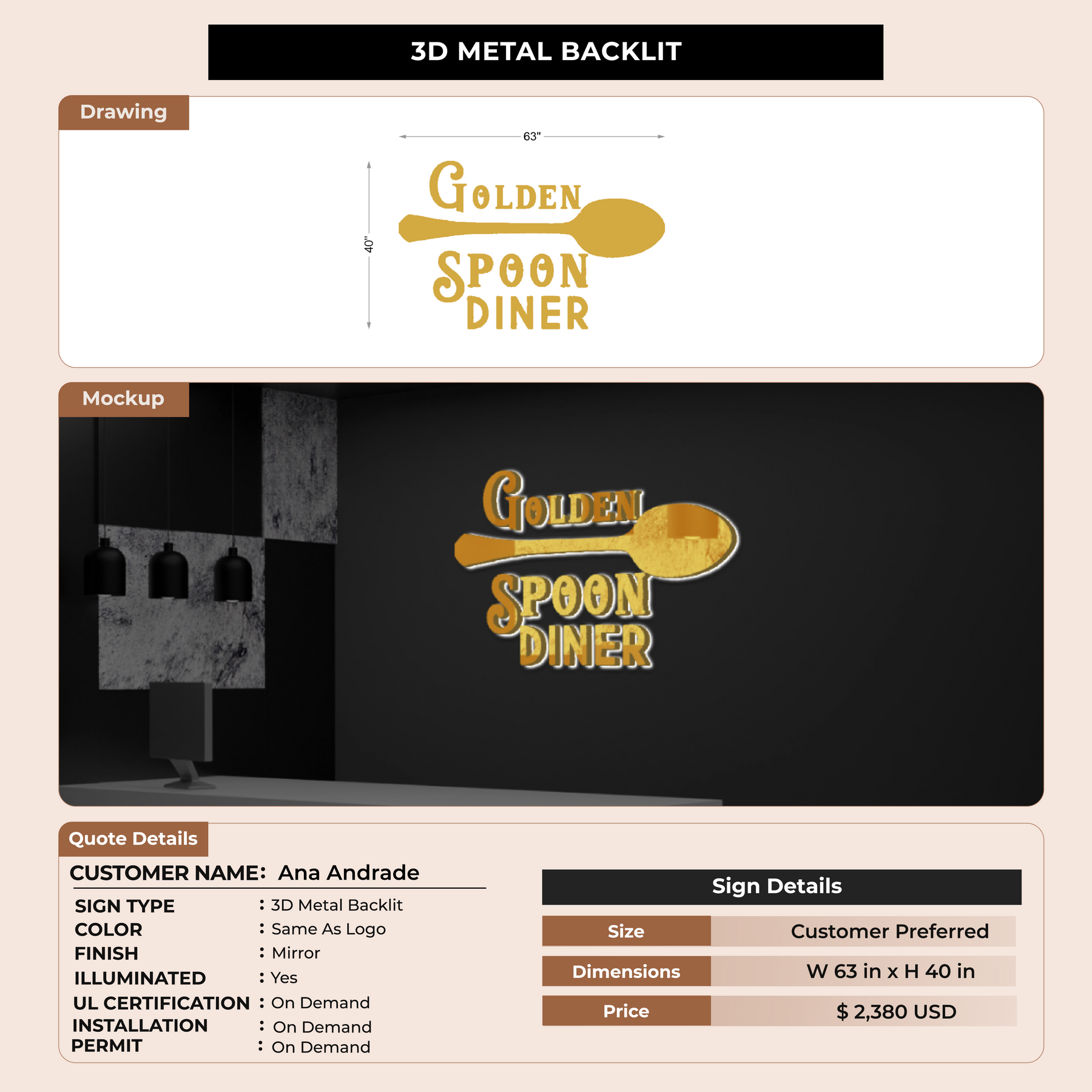 3D Metal Back-lit Sign For Ana Andrade