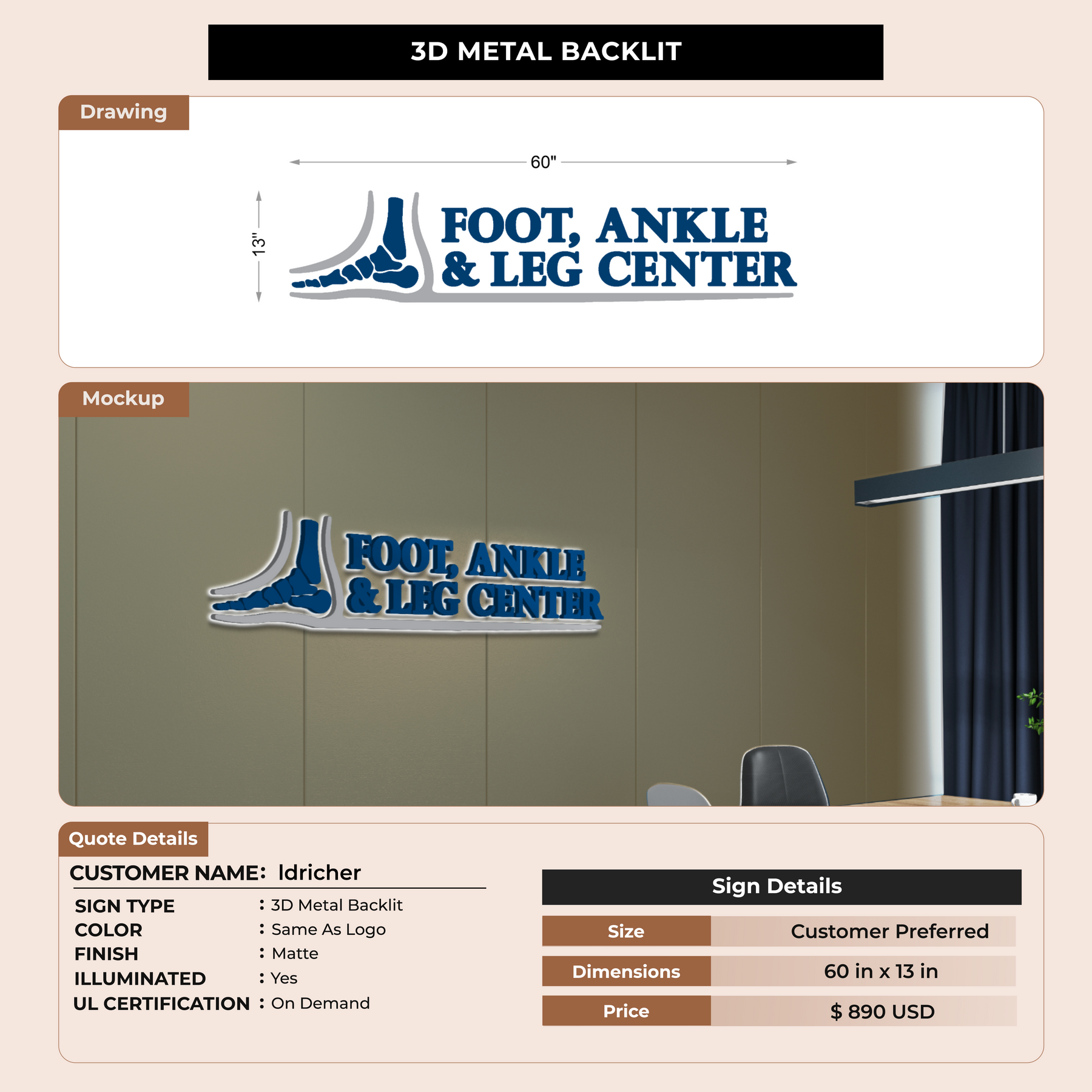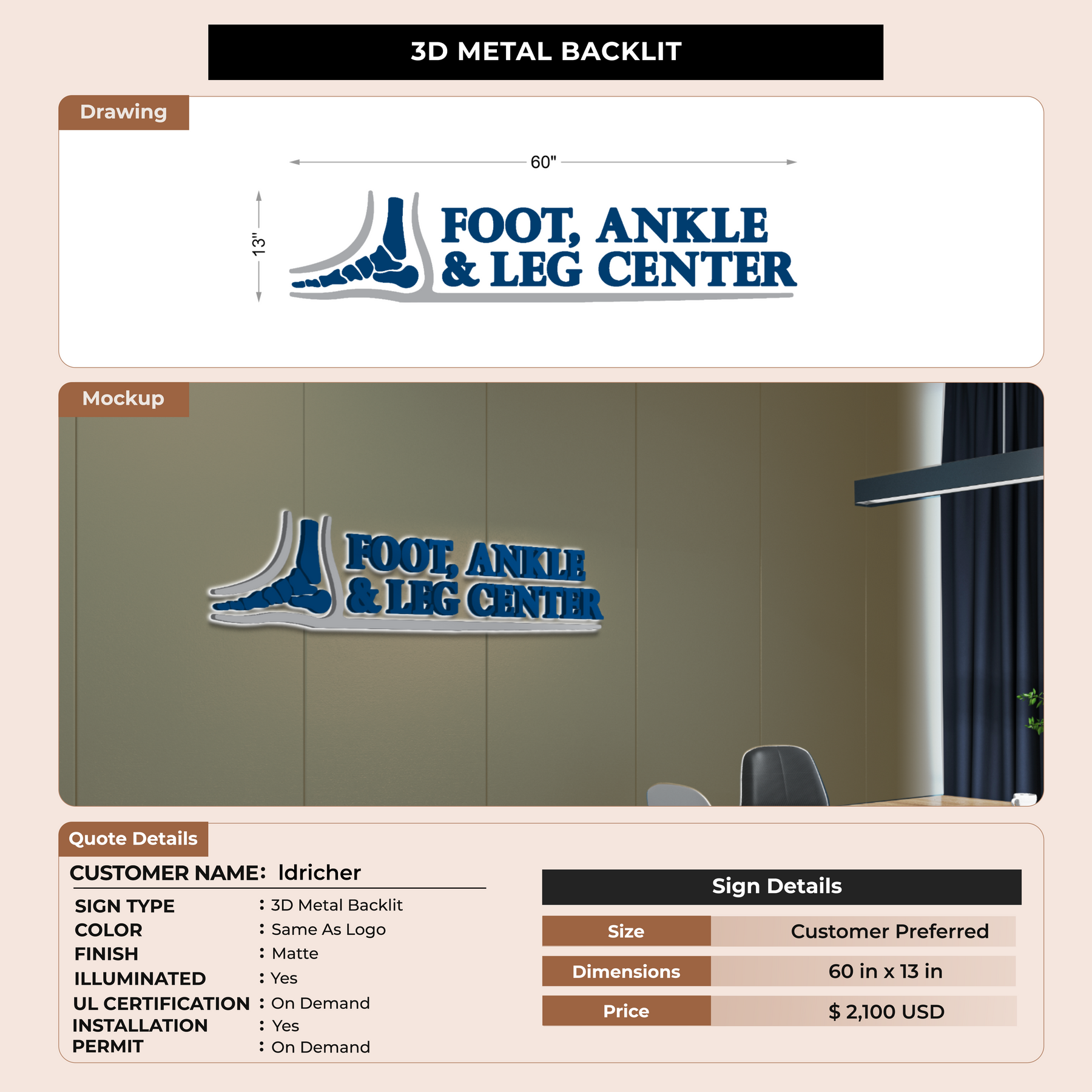 3D Metal Back-lit Sign For Idricher