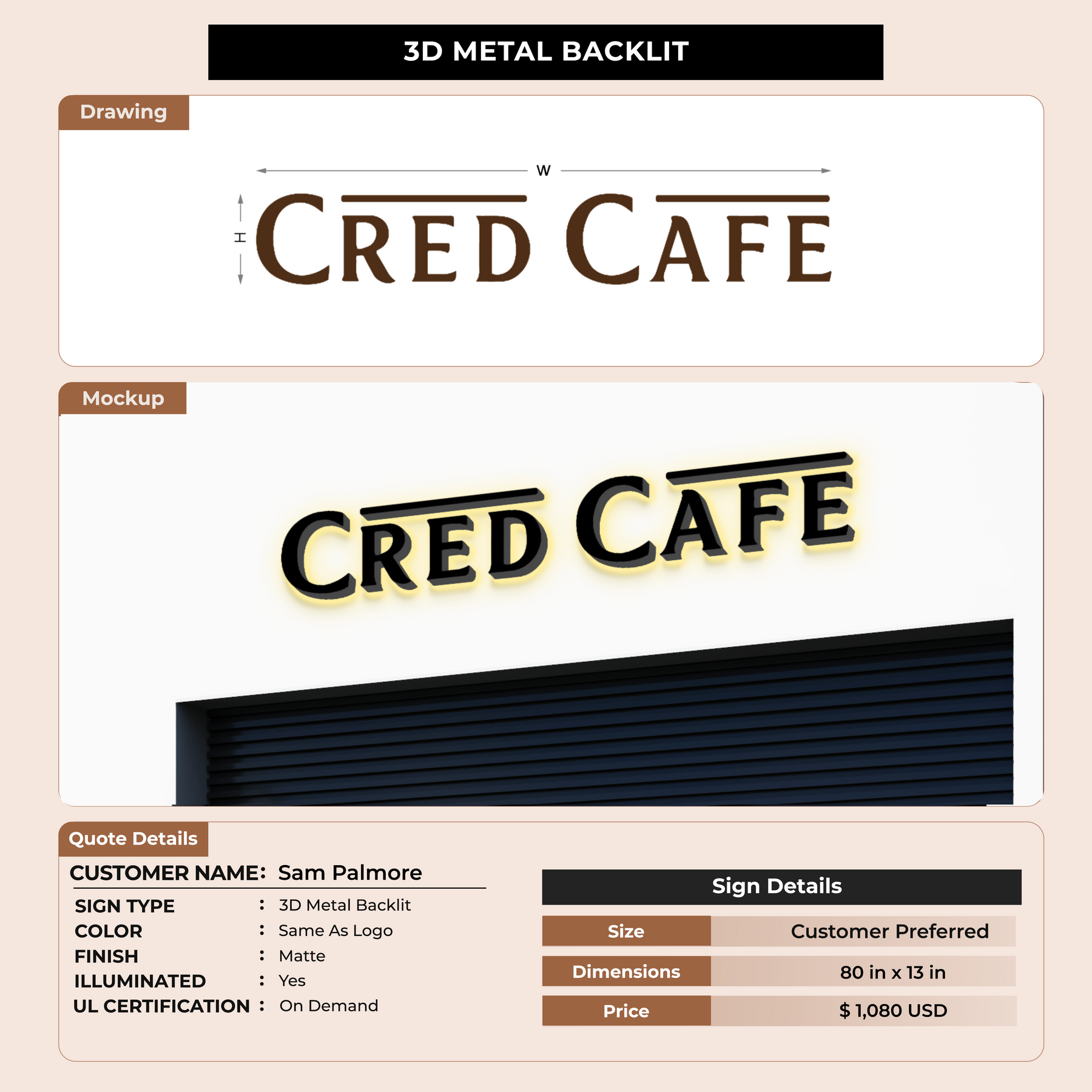 3D Metal Back-lit Signs For Sam Palmore