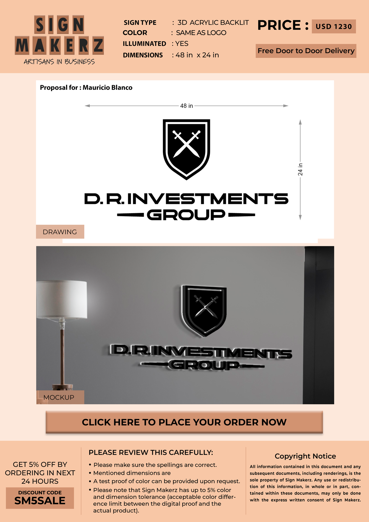 Crafted with premium material, this signage will elevate your business image, precisely mirroring your logo for a professional look.