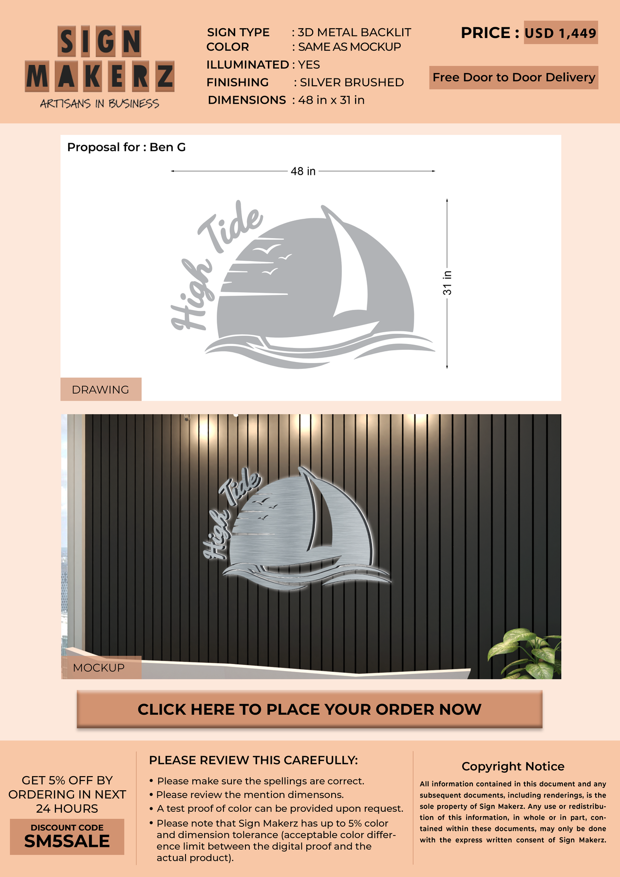 Crafted with premium material, this signage will elevate your business image, precisely mirroring your logo for a professional look.