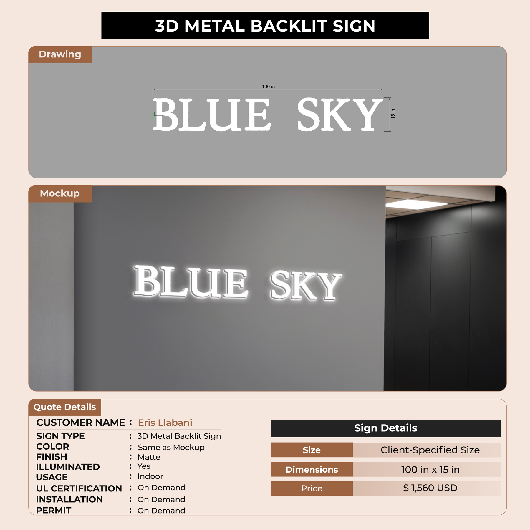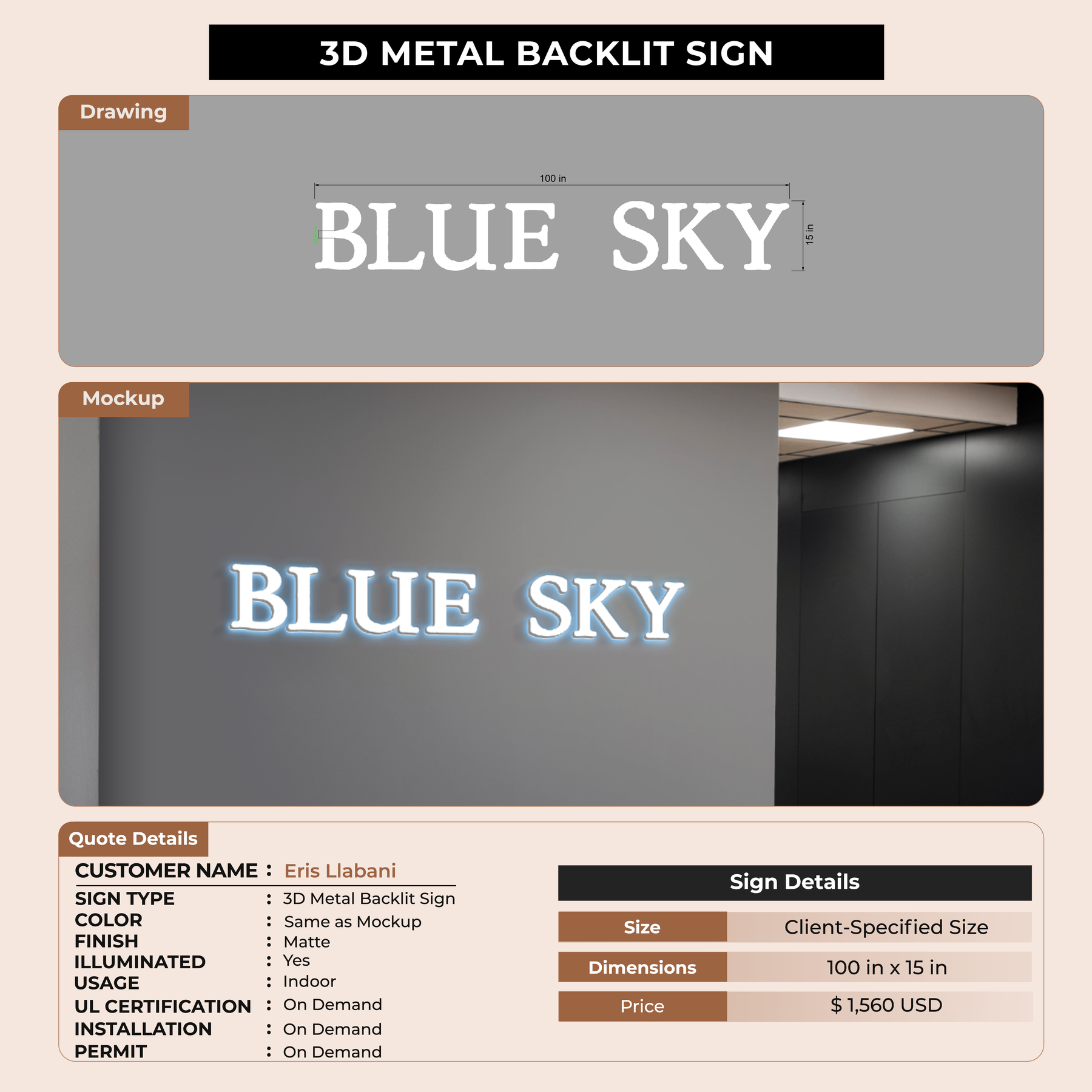 3D Metal Backlit Sign for Eris Llabani