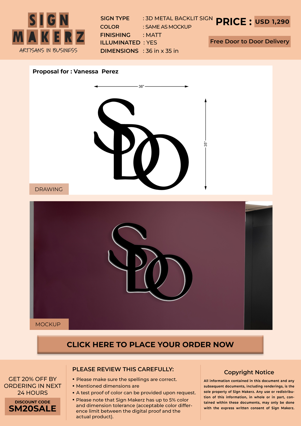 Crafted with premium material, this signage will elevate your business image, precisely mirroring your logo for a professional look.