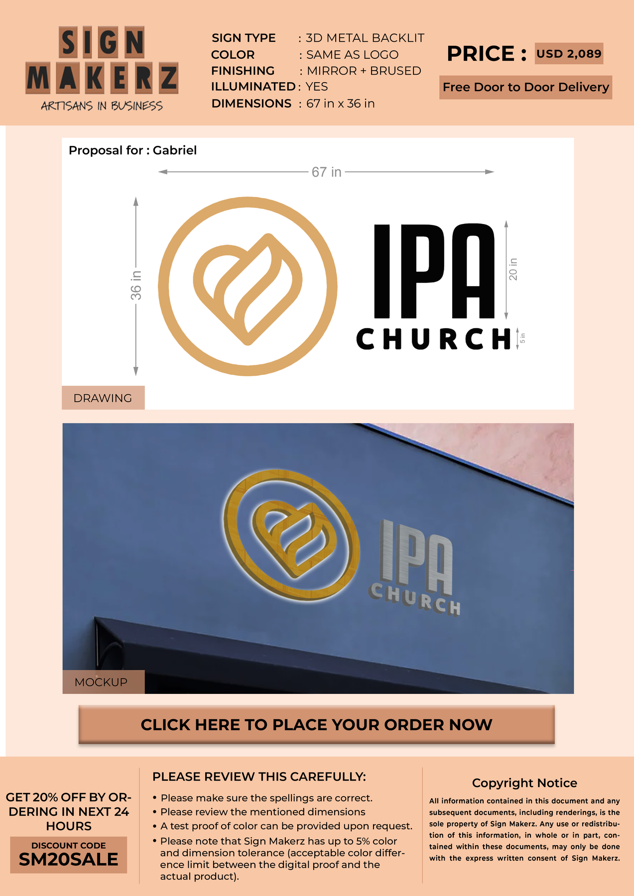 3D Metal Backlit sign for Gabriel