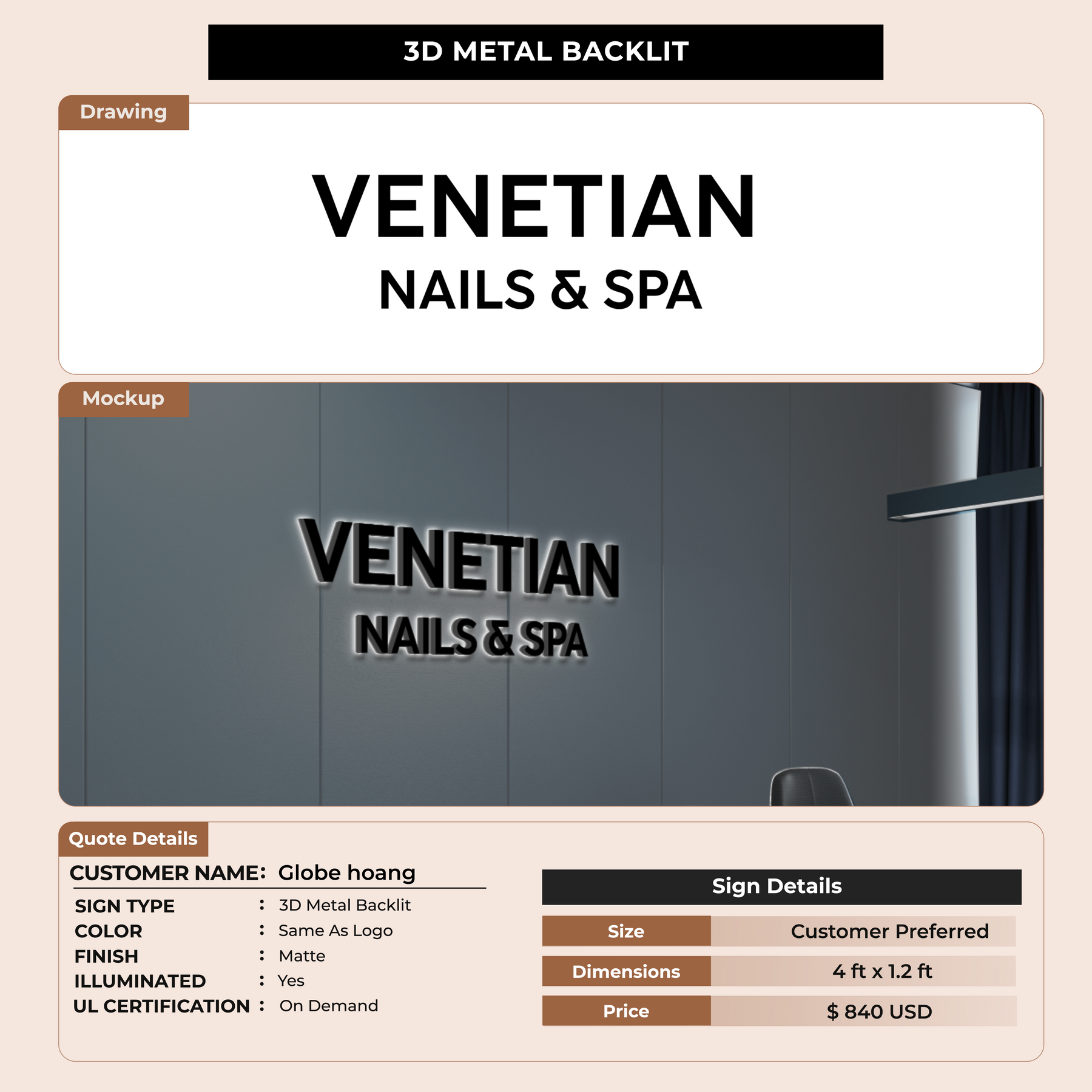 3D Metal Backlit Sign for Globe Hoang
