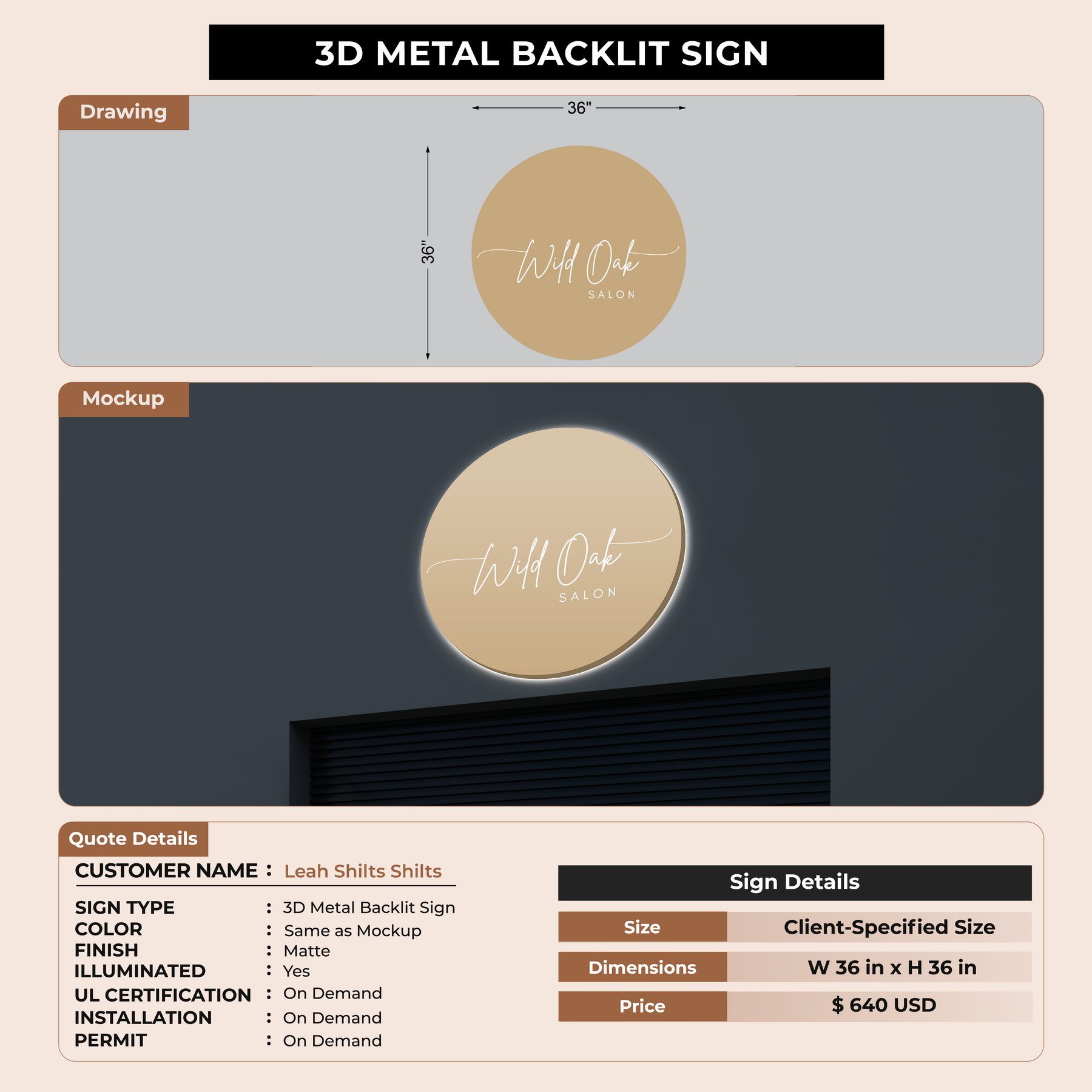 3D MeTal Backlit Sign for Leah Shilts Shilts