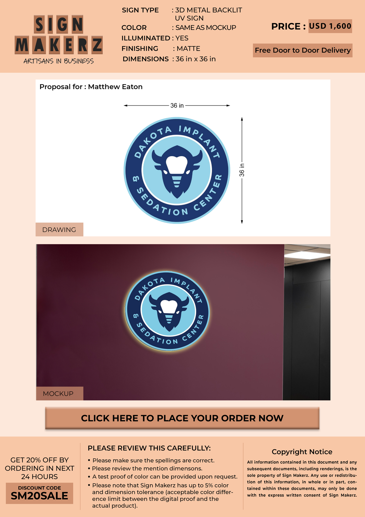 3D Metal Backlit Sign For Matthew Eaton