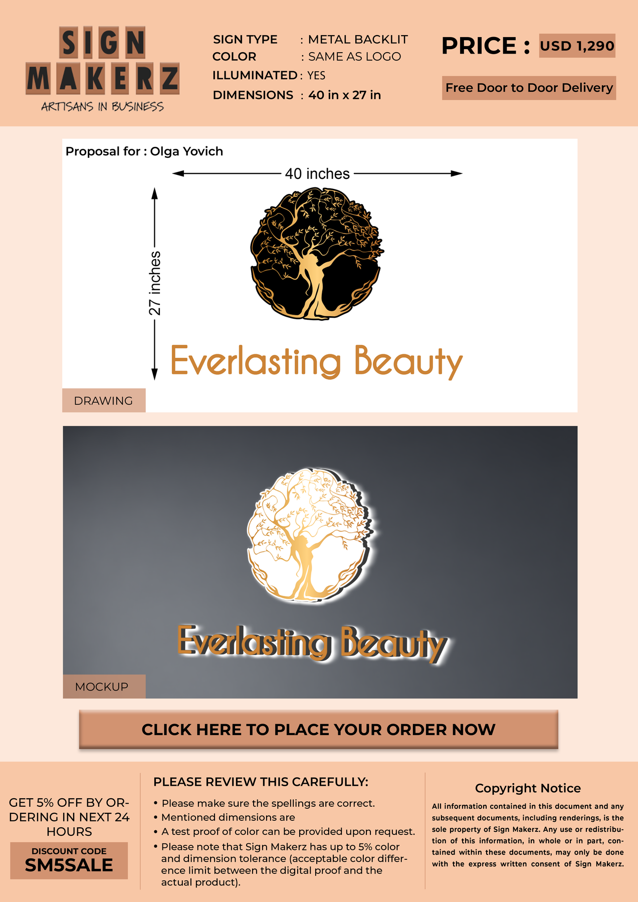3D Metal Backlit sign for Olga Yovich