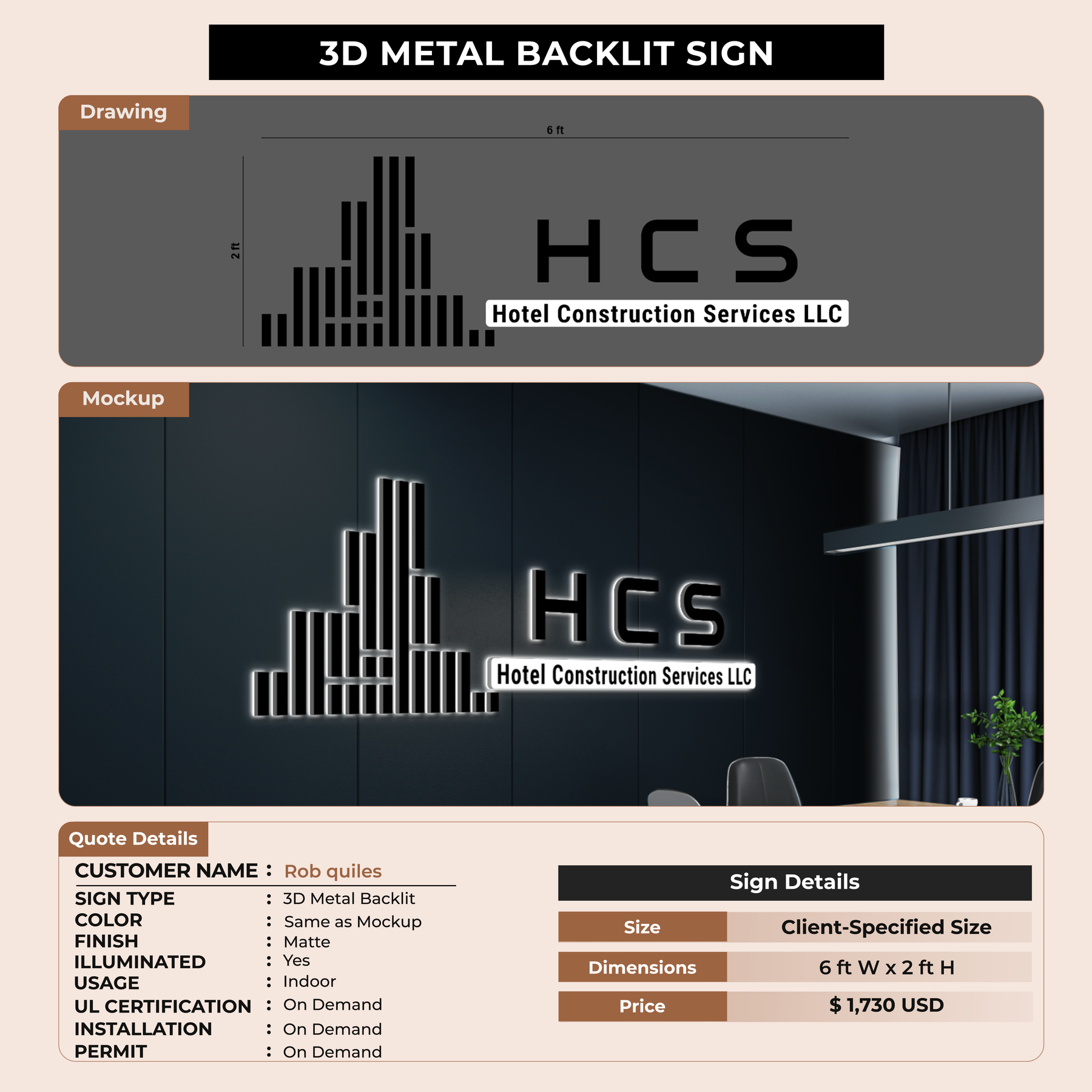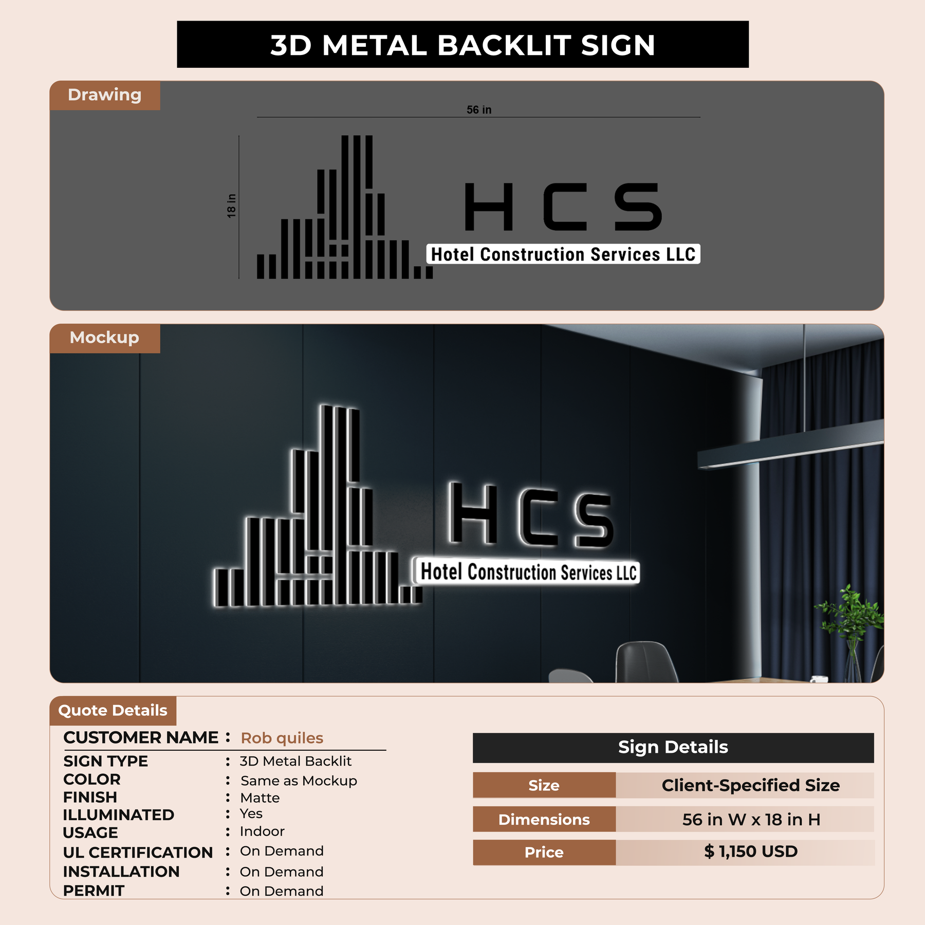 3D metal backlit sign for Rob quiles
