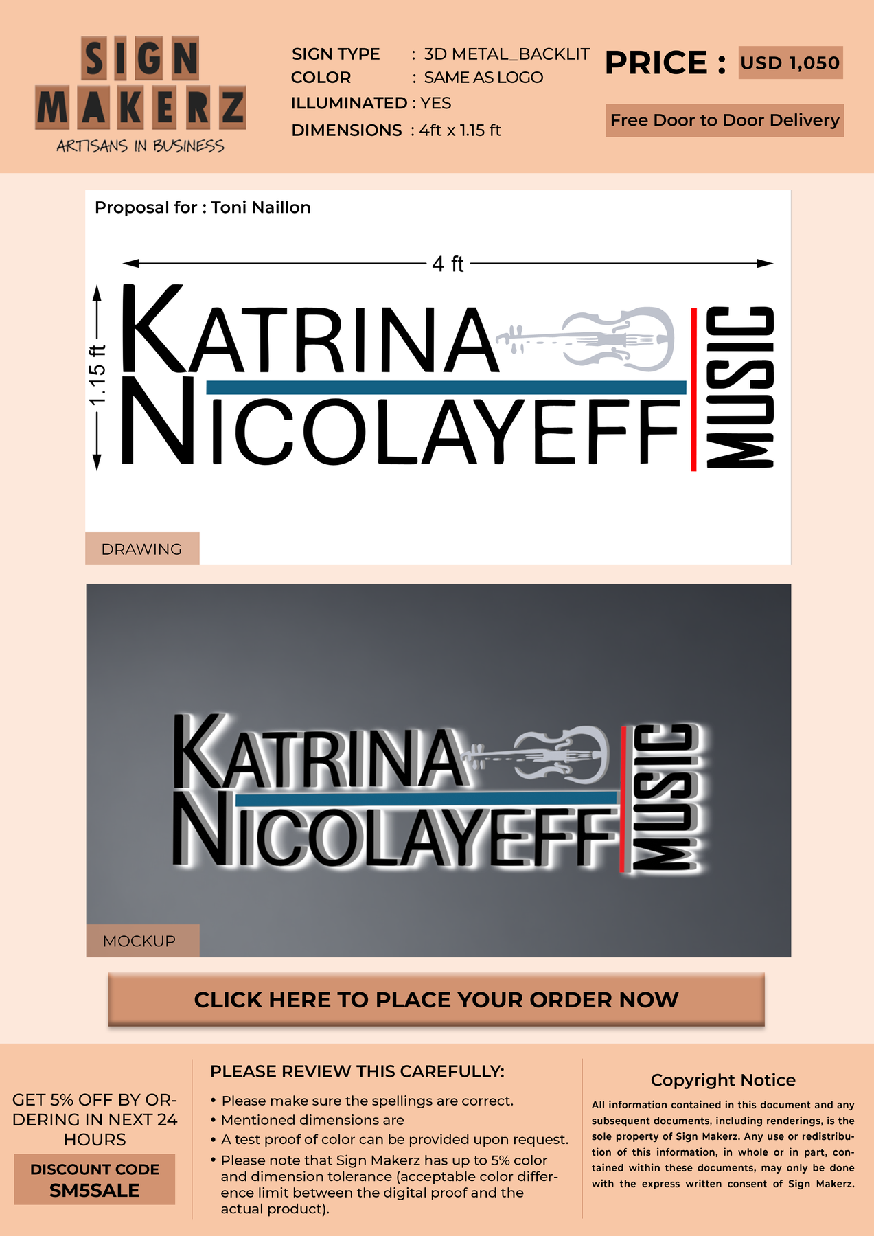 Crafted with premium material, this signage will elevate your business image, precisely mirroring your logo for a professional look.