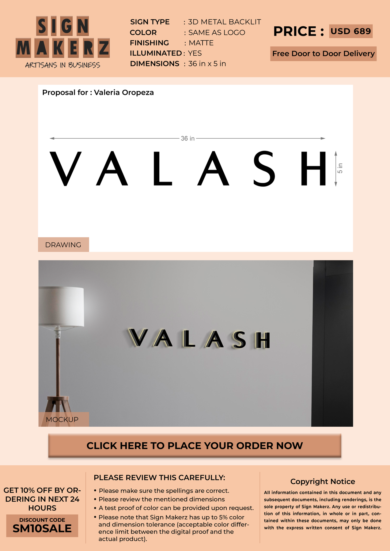 3D Metal Backlit sign for Valeria Oropeza