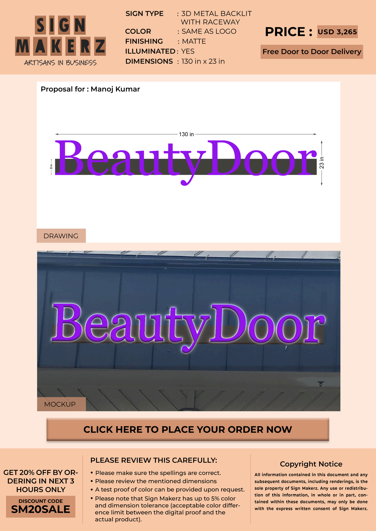 3D Metal Backlit Sign with Raceways for Manoj Kumar