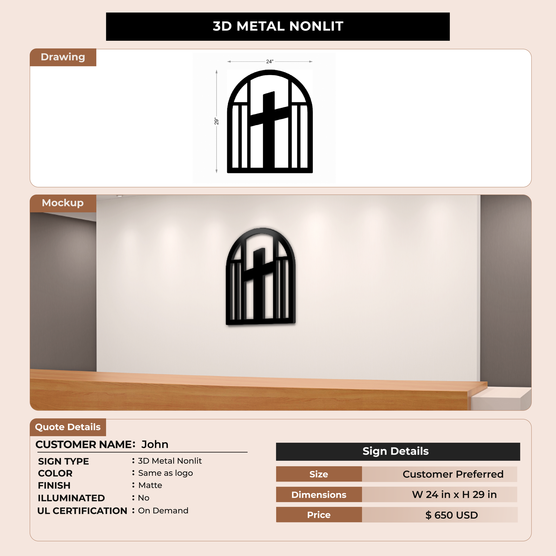 3D Metal Non-lit Sign For John