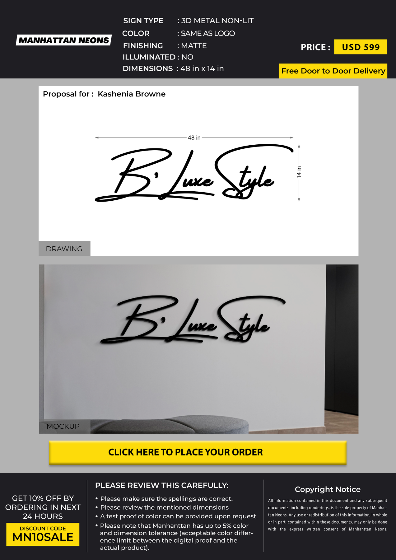 3D Metal Sign for Kashenia Browne