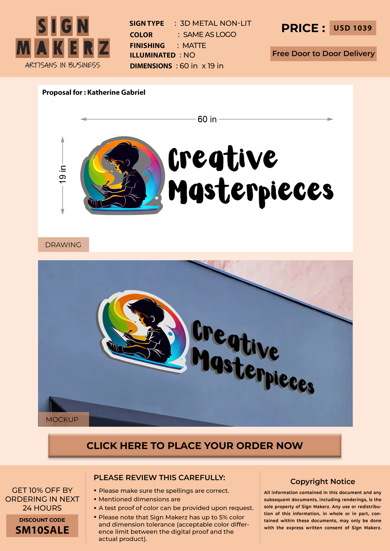 3D Metal Sign for Katherine Gabriel