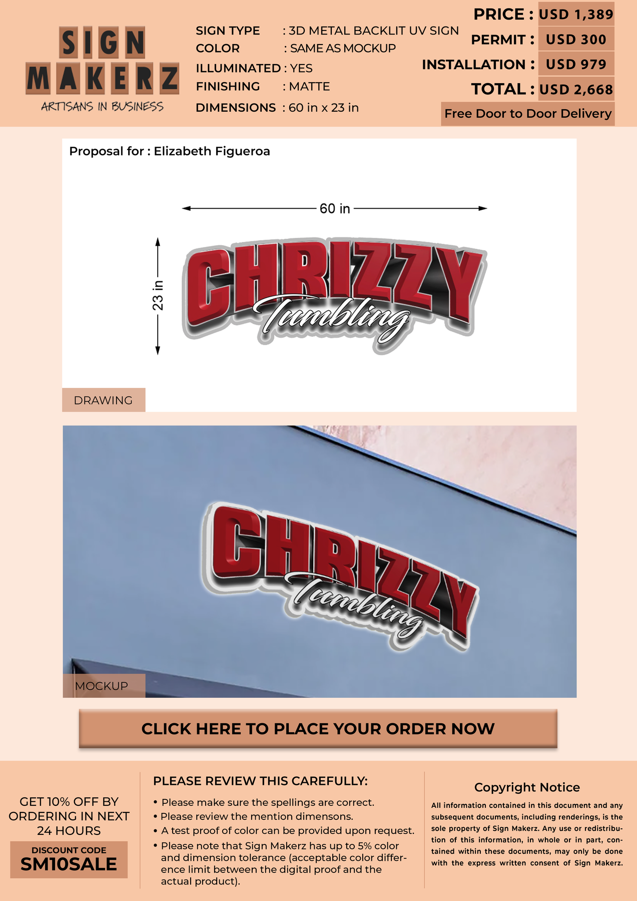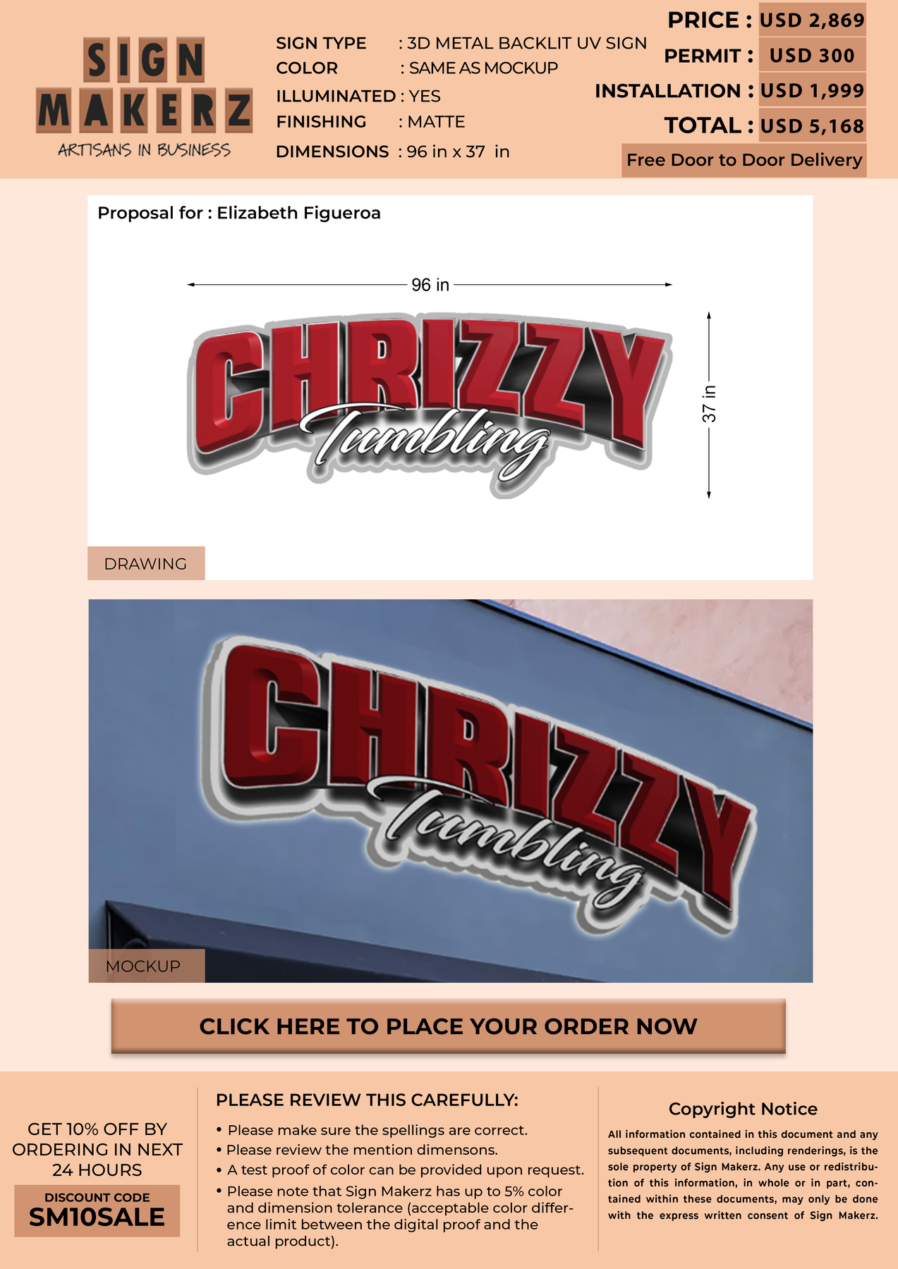 3D UV Metal Backlit sign for Elizabeth Figueroa