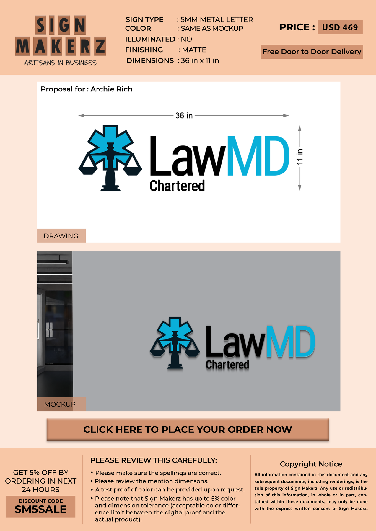 Crafted with premium material, this signage will elevate your business image, precisely mirroring your logo for a professional look.