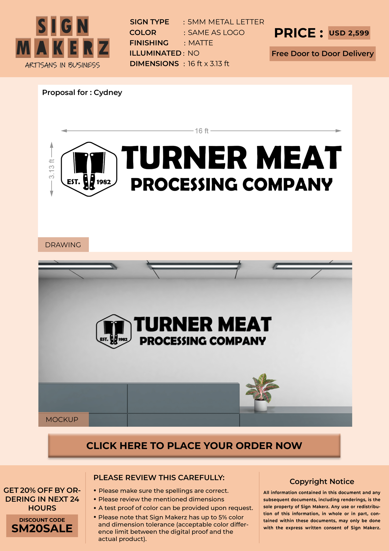 Crafted with premium material, this signage will elevate your business image, precisely mirroring your logo for a professional look.